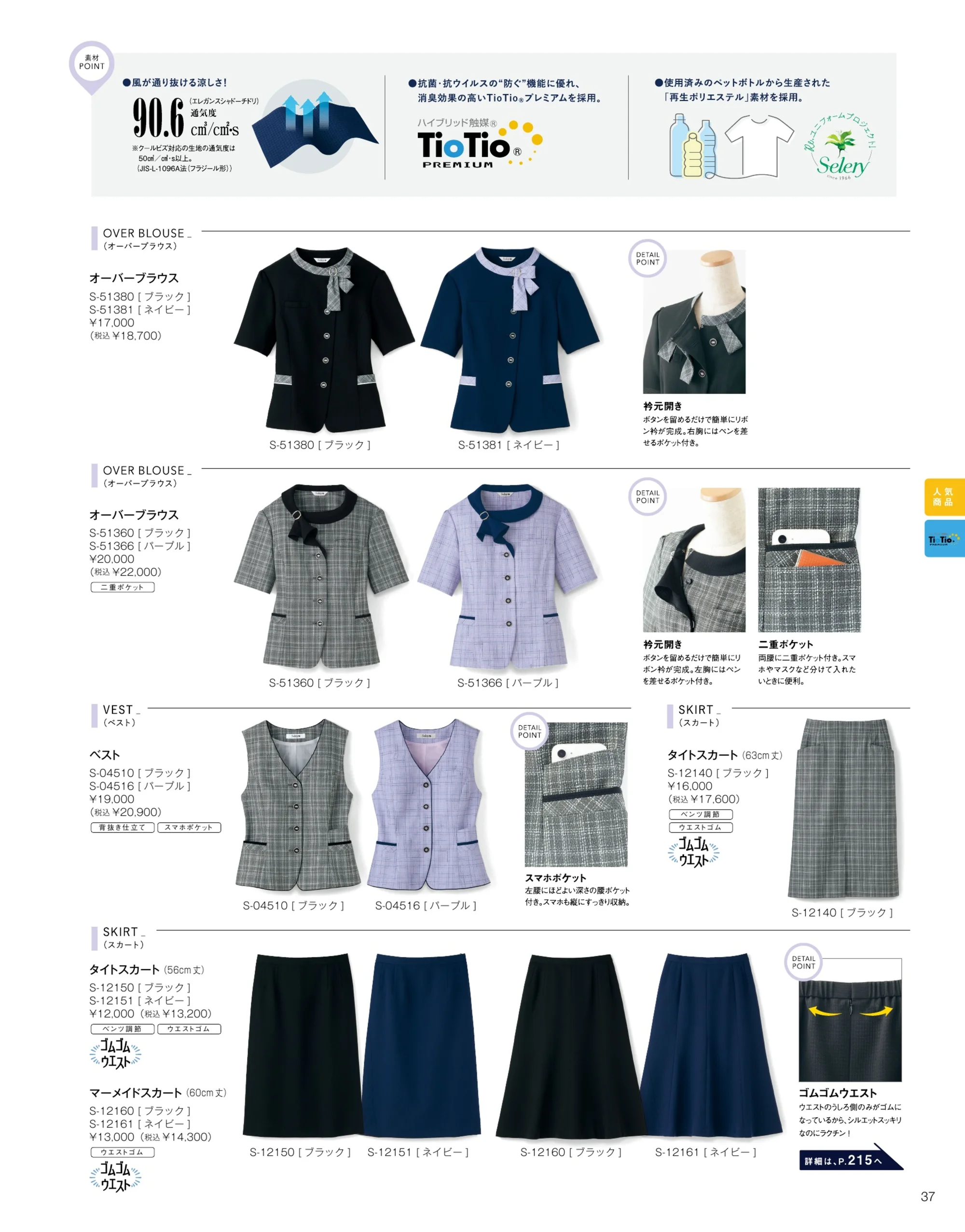 | 素材特長 | ストレッチ、制電・ストレッチ裏地使用、TioTio®プレミアム、吸水性、速乾、ホームクリーニング(洗濯機洗い) |