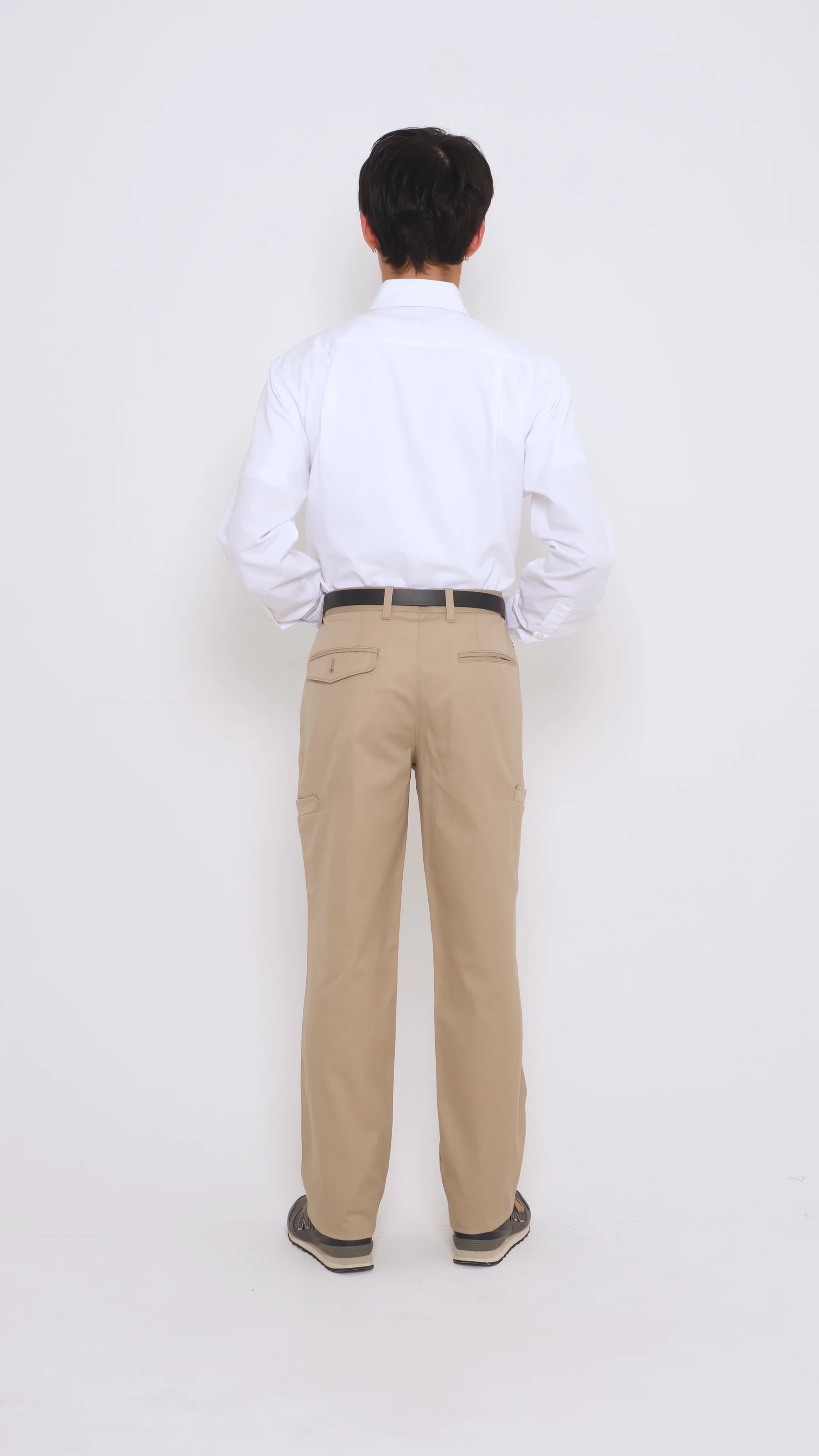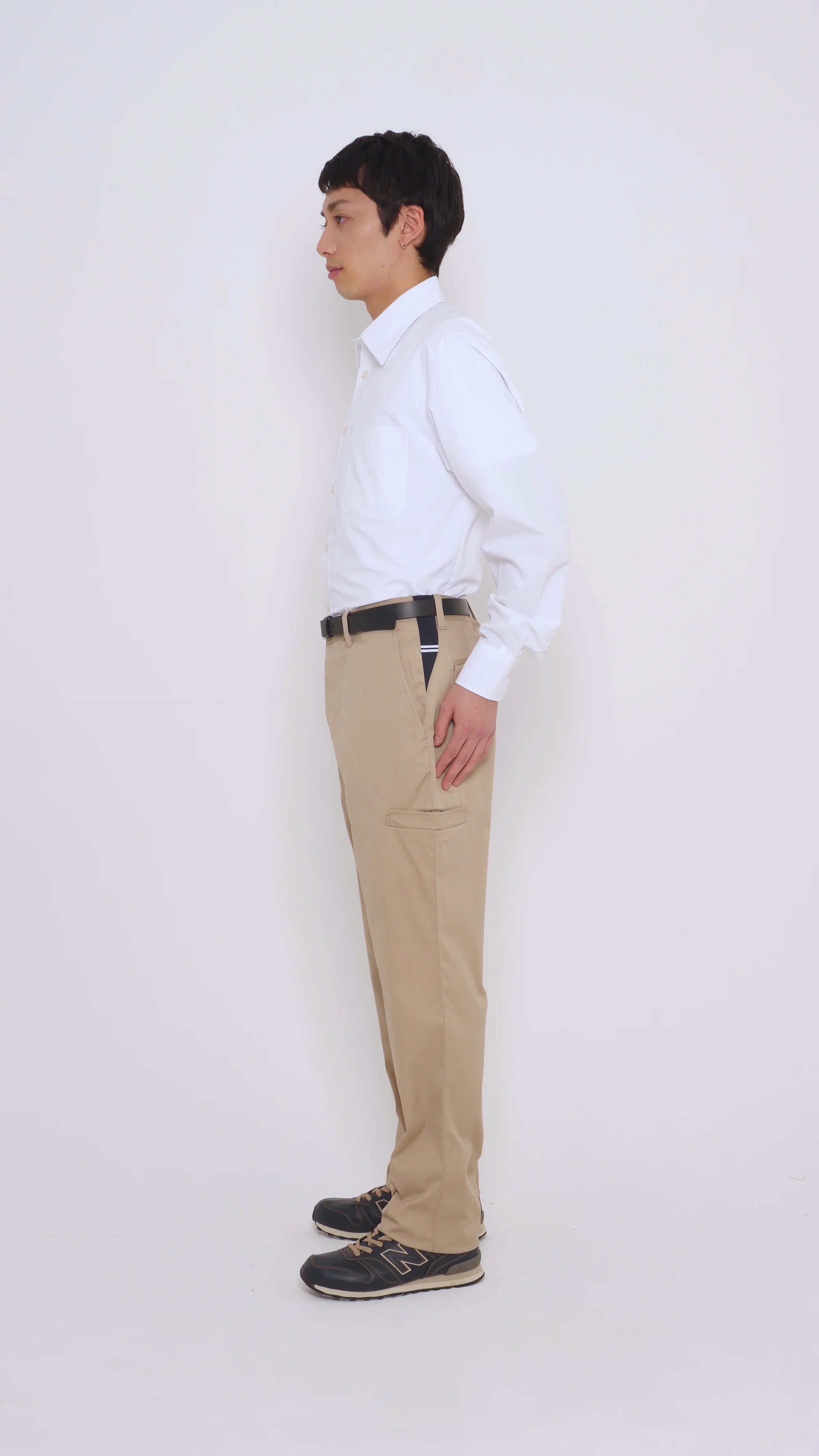 リブ効果でフィット感も抜群!ウエストリブパンツ。意匠権出願中。ウエスト両脇にリブを使った機能性チノパンツ。リブ素材のストレッチ性により、ウエストのフィット感も抜群。立ったりしゃがんだりする動作もスムーズです。