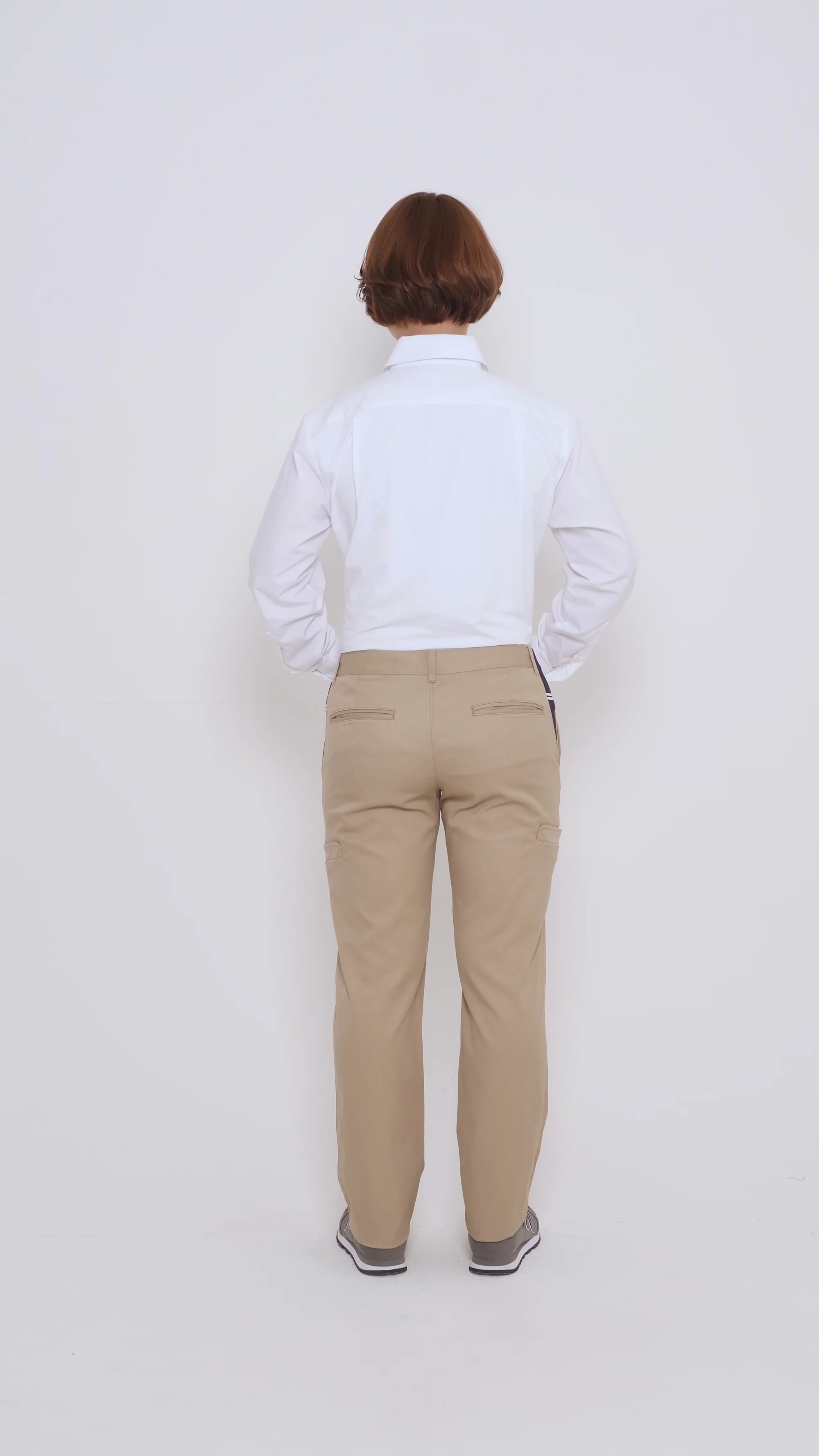 リブ効果でフィット感も抜群!ウエストリブパンツ。意匠権出願中。ウエスト両脇にリブを使った機能性チノパンツ。リブ素材のストレッチ性により、ウエストのフィット感も抜群。立ったりしゃがんだりする動作もスムーズです。
