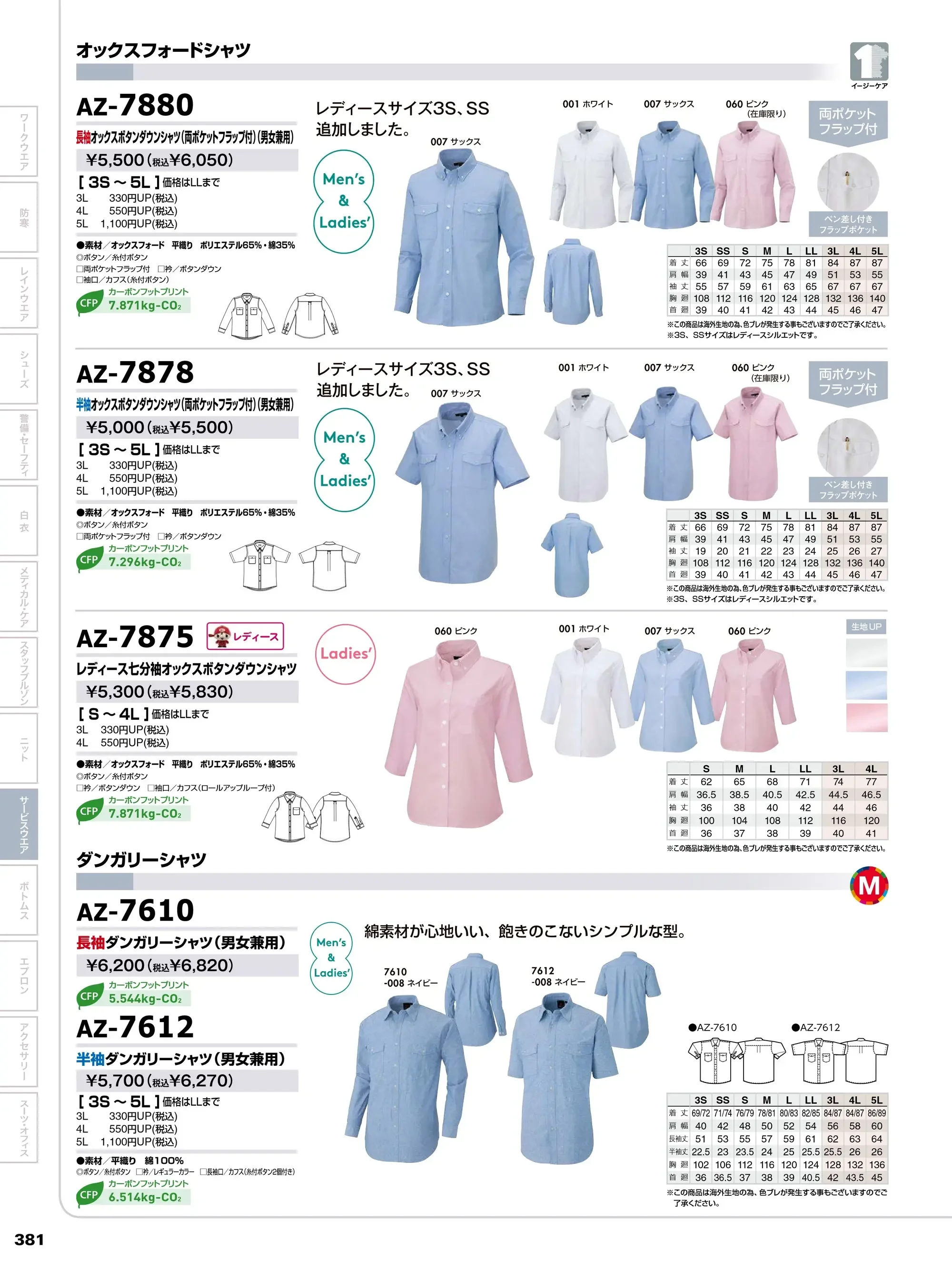 AZ-7880 長袖オックスボタンダウンシャツ(両ポケットフラップ付・男女兼用)