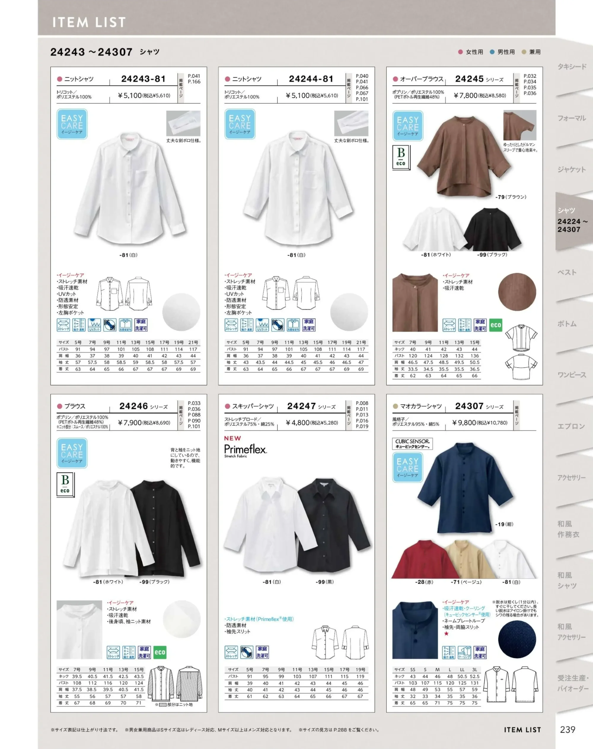 | 形状特長 | スキッパー衿・七分袖・袖口スリット・レディース仕様 |