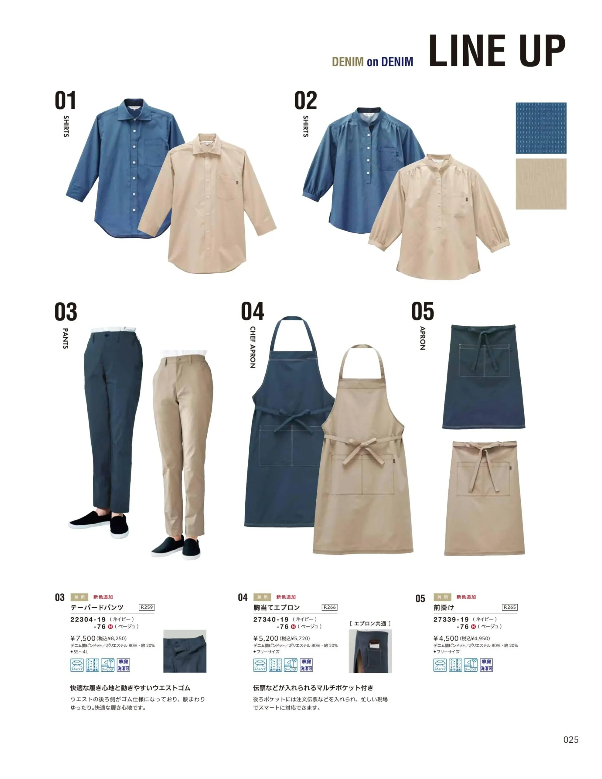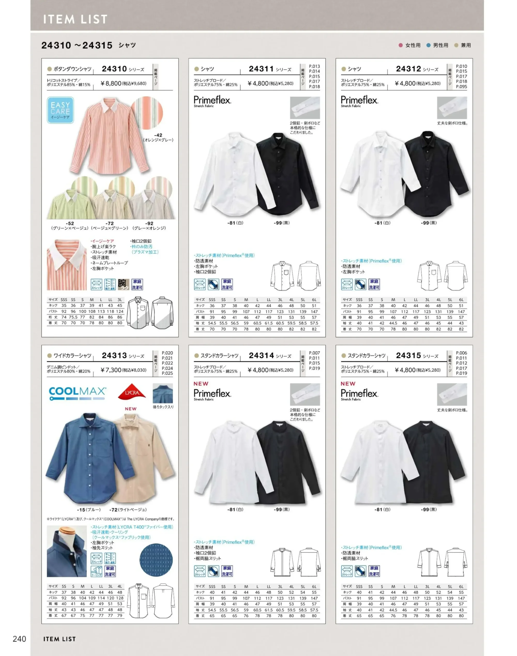 | 形状特長 | ワイドカラー・七分袖・左胸ポケット・袖先スリット |