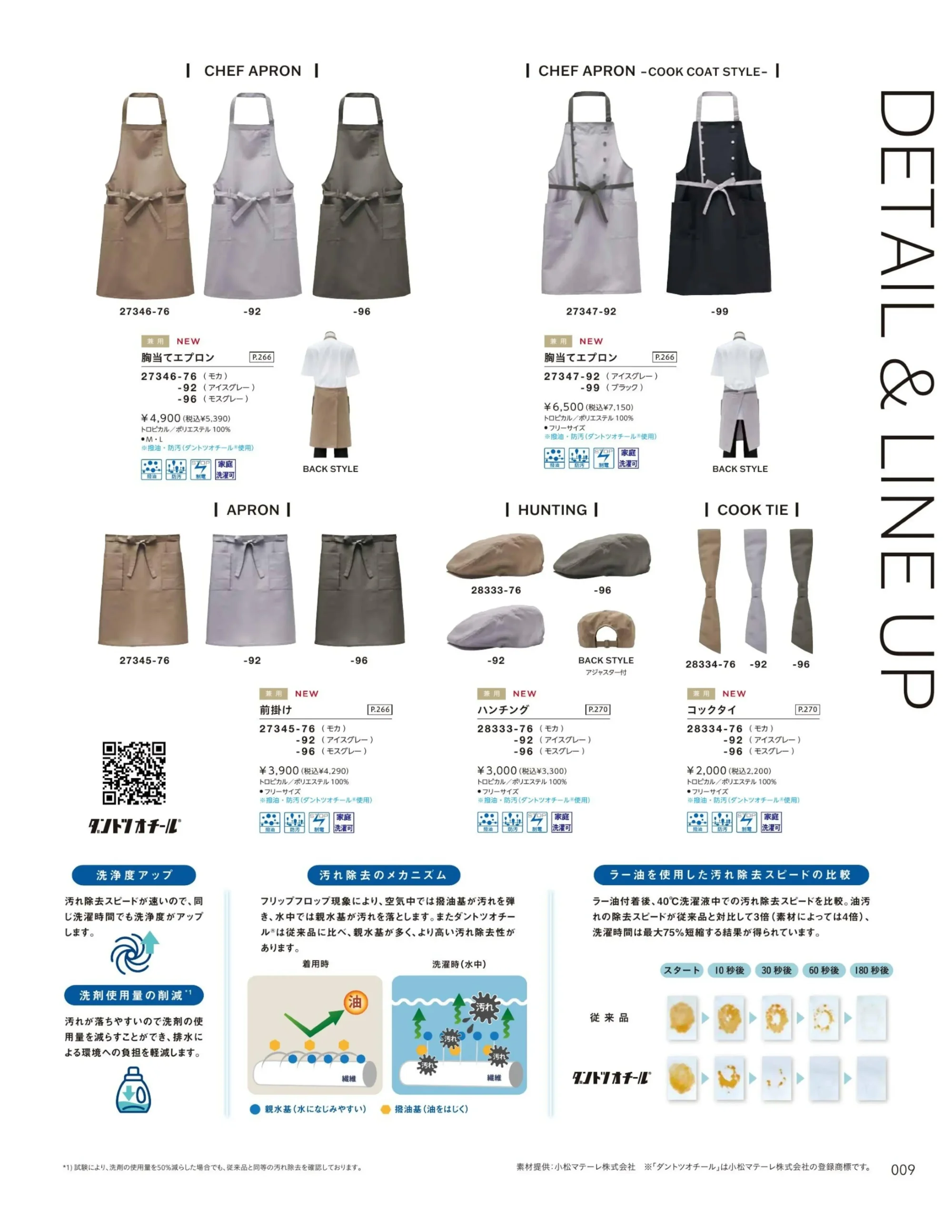 | 素材特長 | 撥油・防汚(ダントツオチ―ル®使用)・制電・家庭洗濯可 |