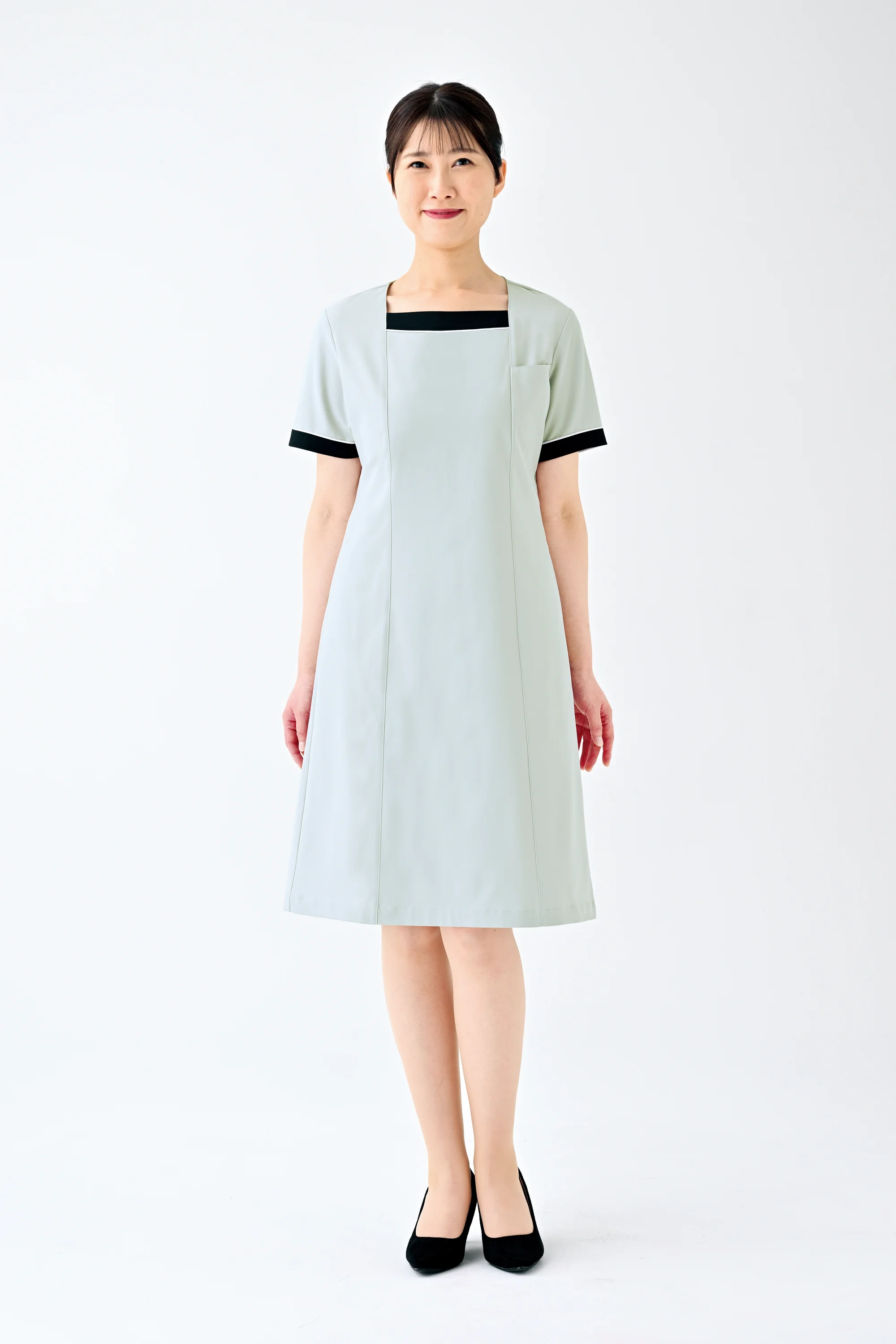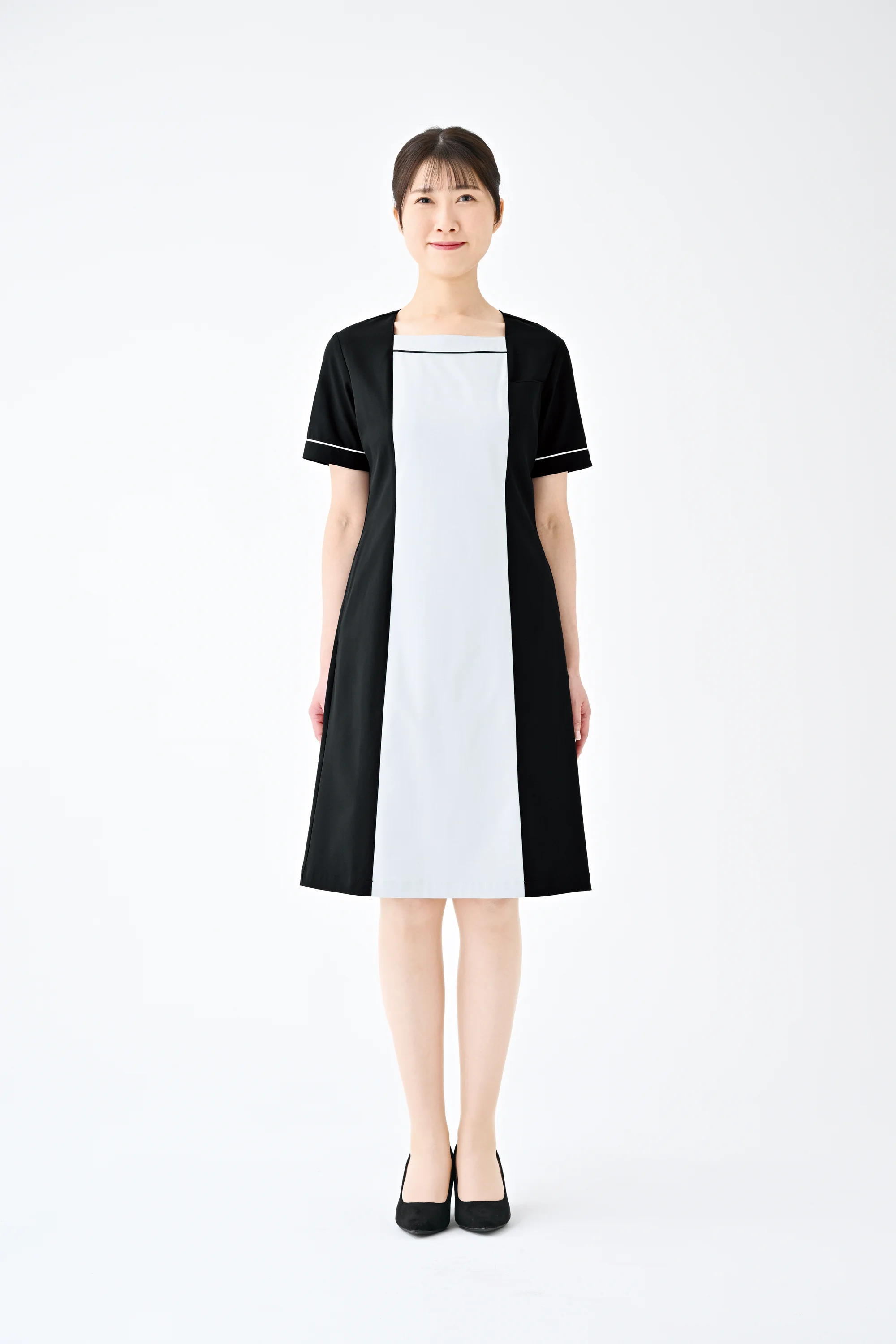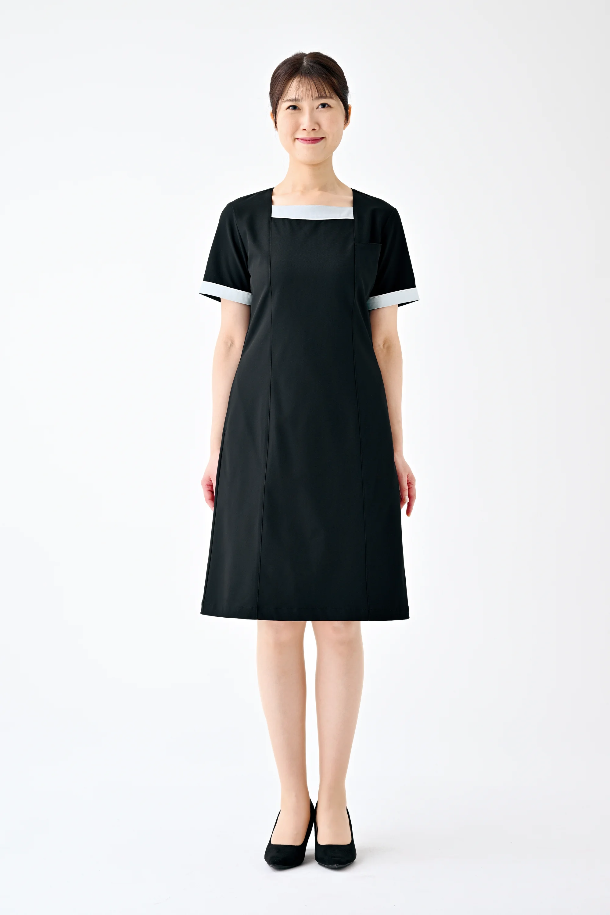 前面の切替えにより、タテ長効果のシルエットを表現したスマートワンピース。