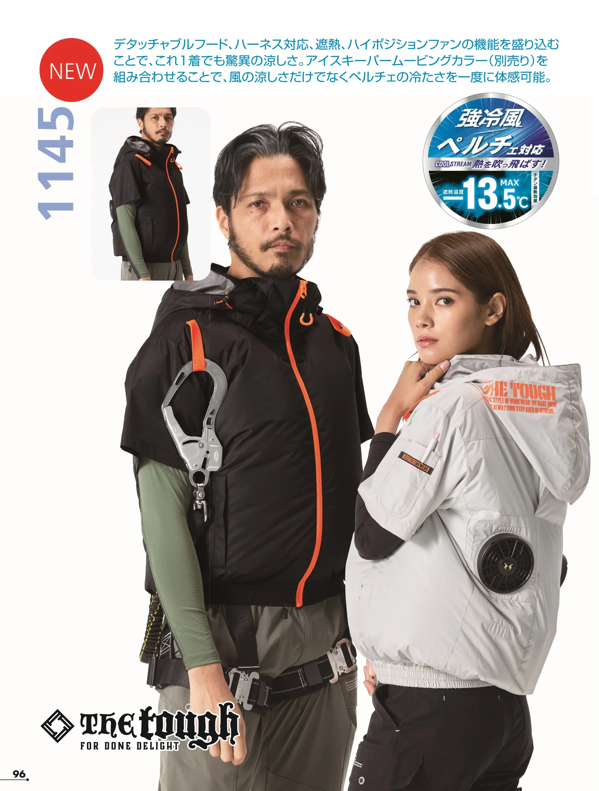 デタッチャブルフード、ハーネス対応、遮熱、ハイポジションファンの機能を盛り込むことで、これ1着でも驚異の涼しさ。アイスキーパームービングカラー(別売り)を組み合わせることで、風の涼しさだけでなくペルチェの冷たさを一度に体感可能。