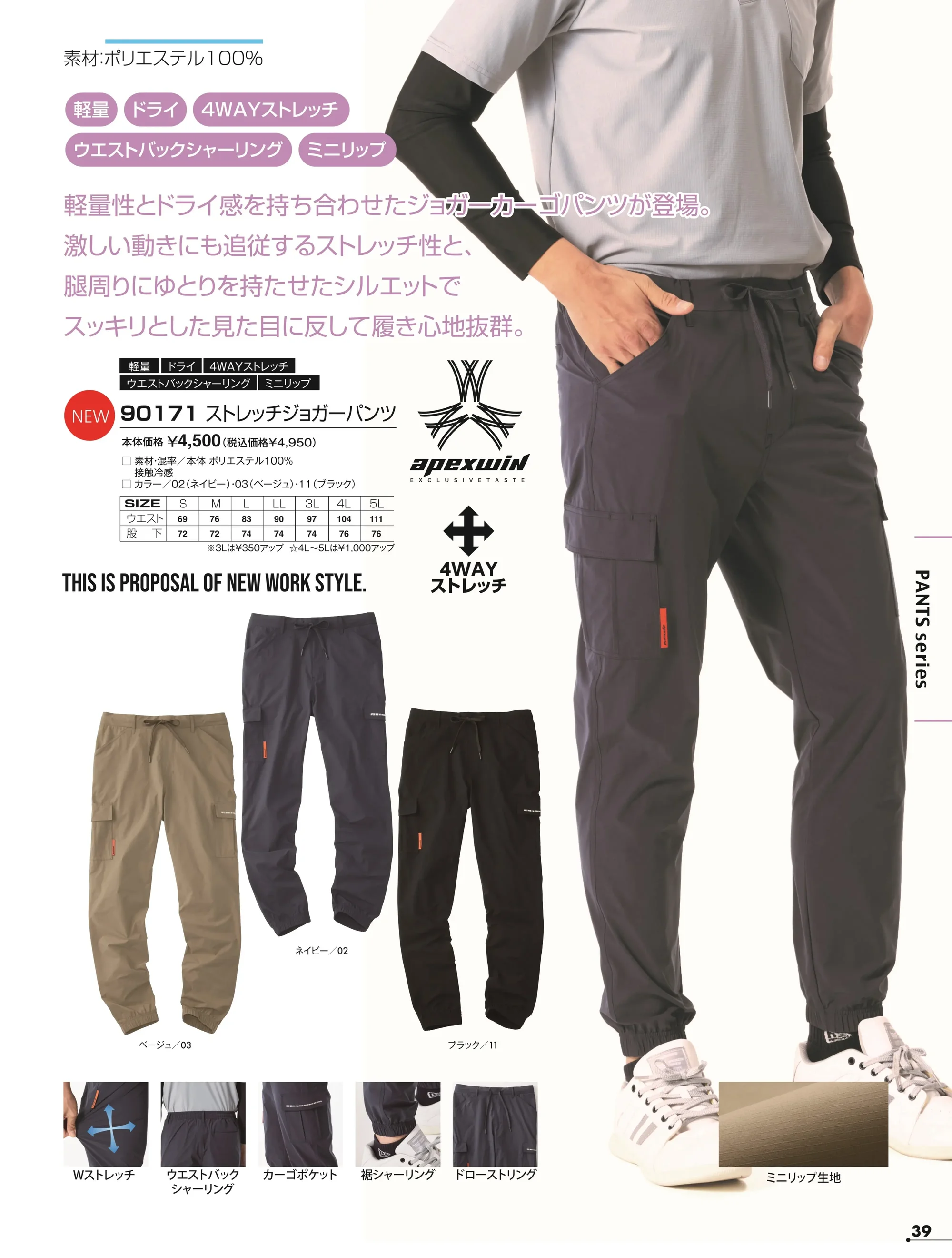 | 形状特長 | ジョガーパンツ|ウエストバックシャーリング|ドローストリング|裾シャーリング|カーゴポケット |