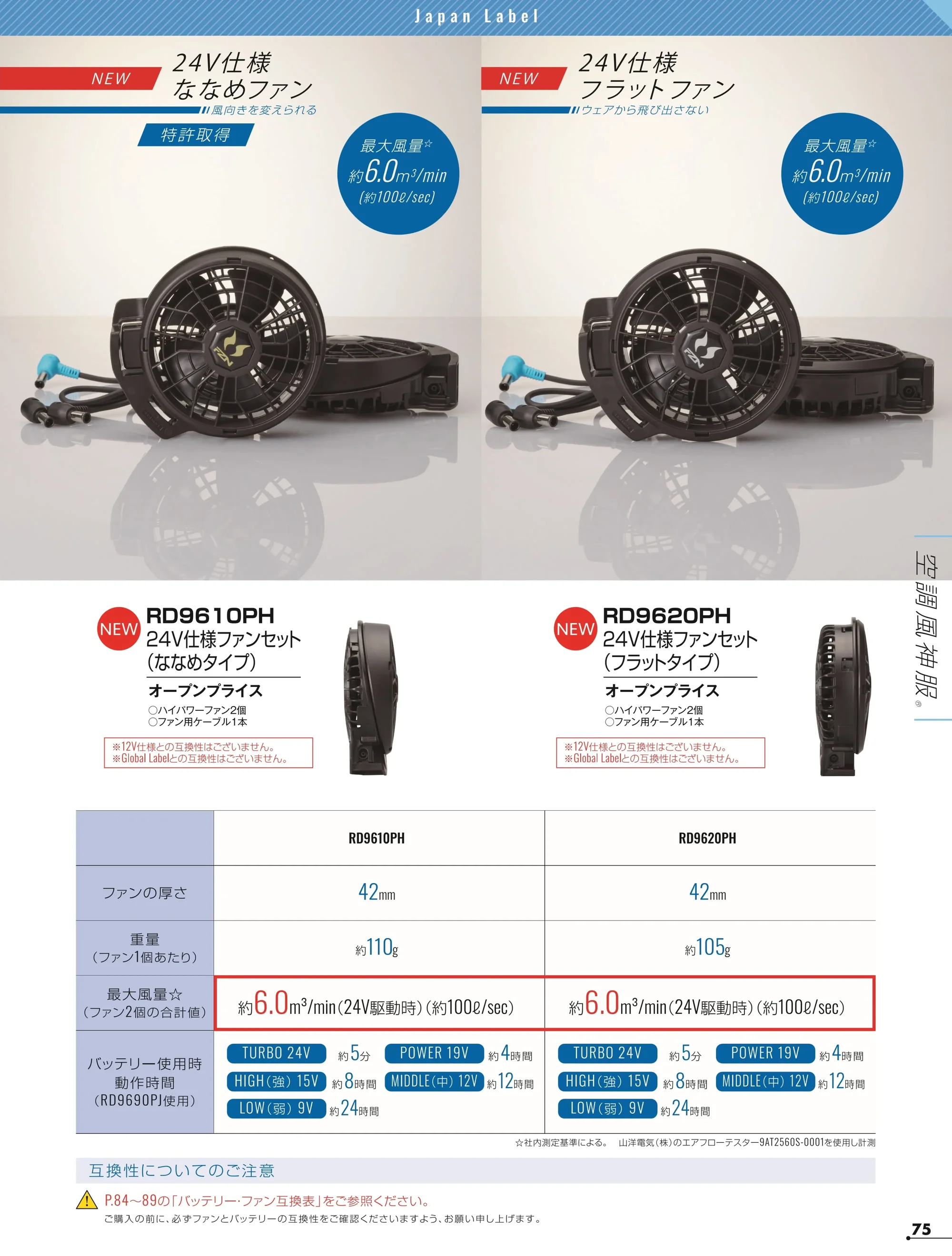 ・最大風量:約6.0㎥/min(24V駆動時)