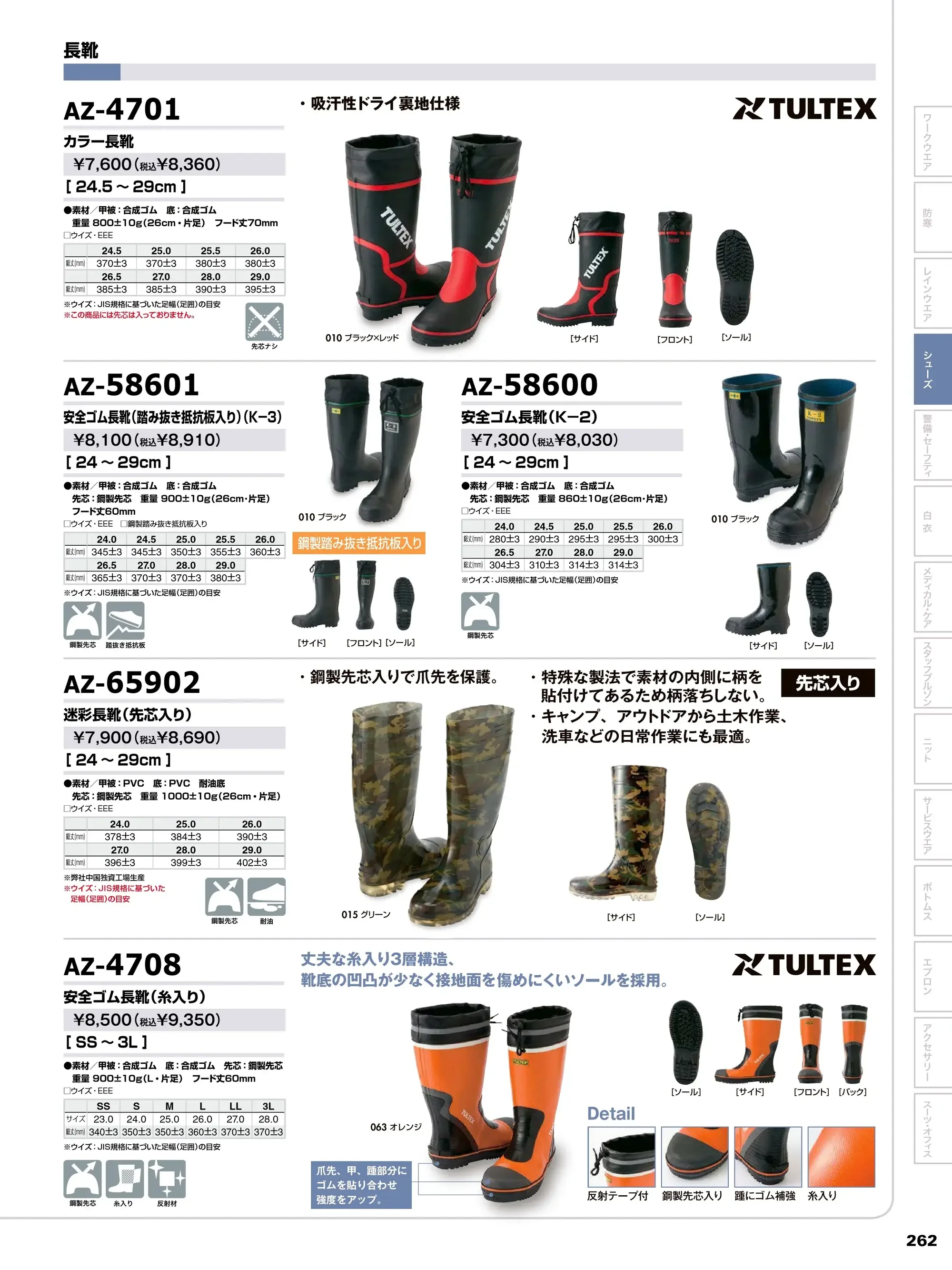 | 使用素材 | 甲被:ゴム 底:ゴム 先芯:鋼製先芯(JIS S級相当) |