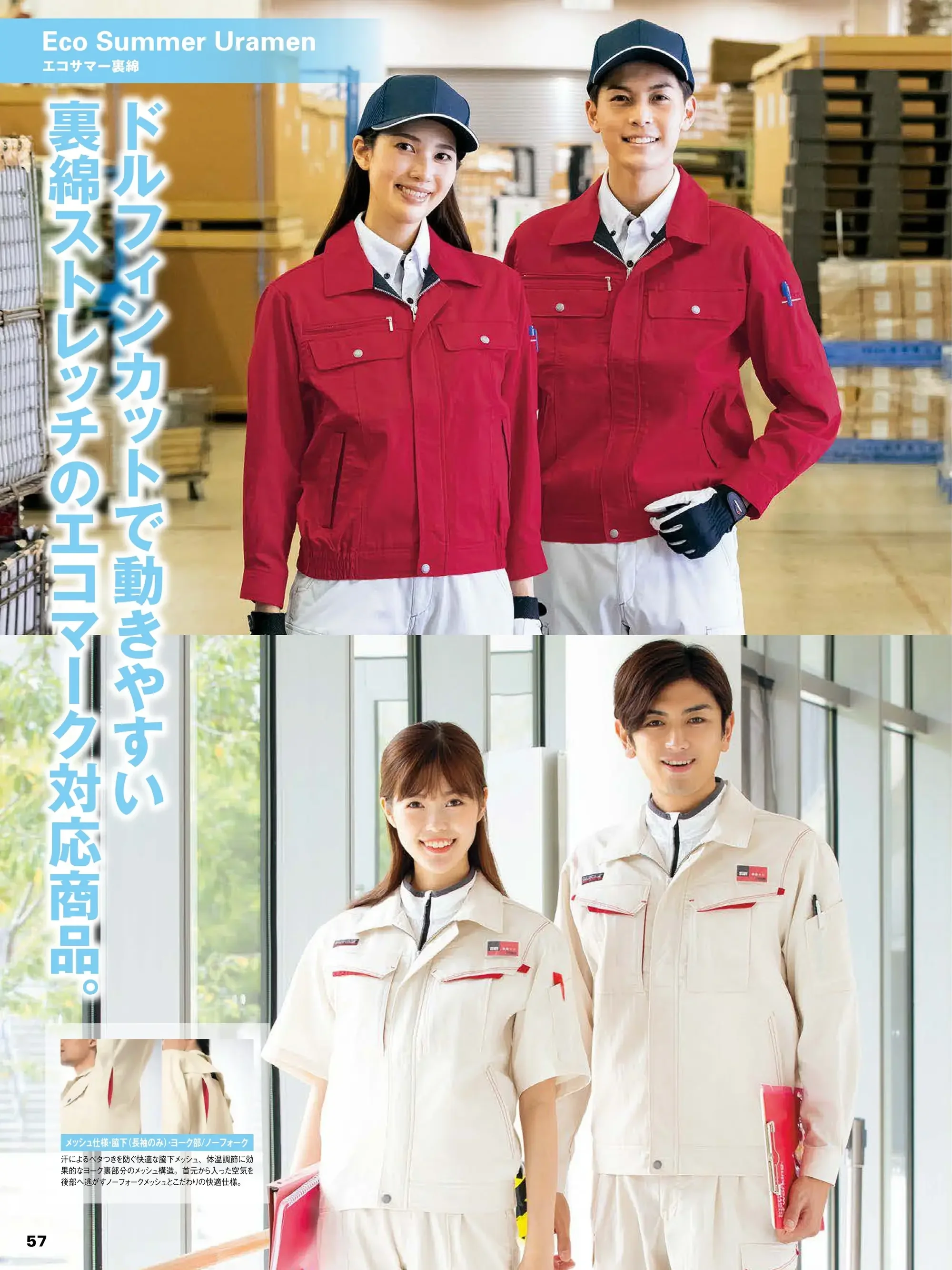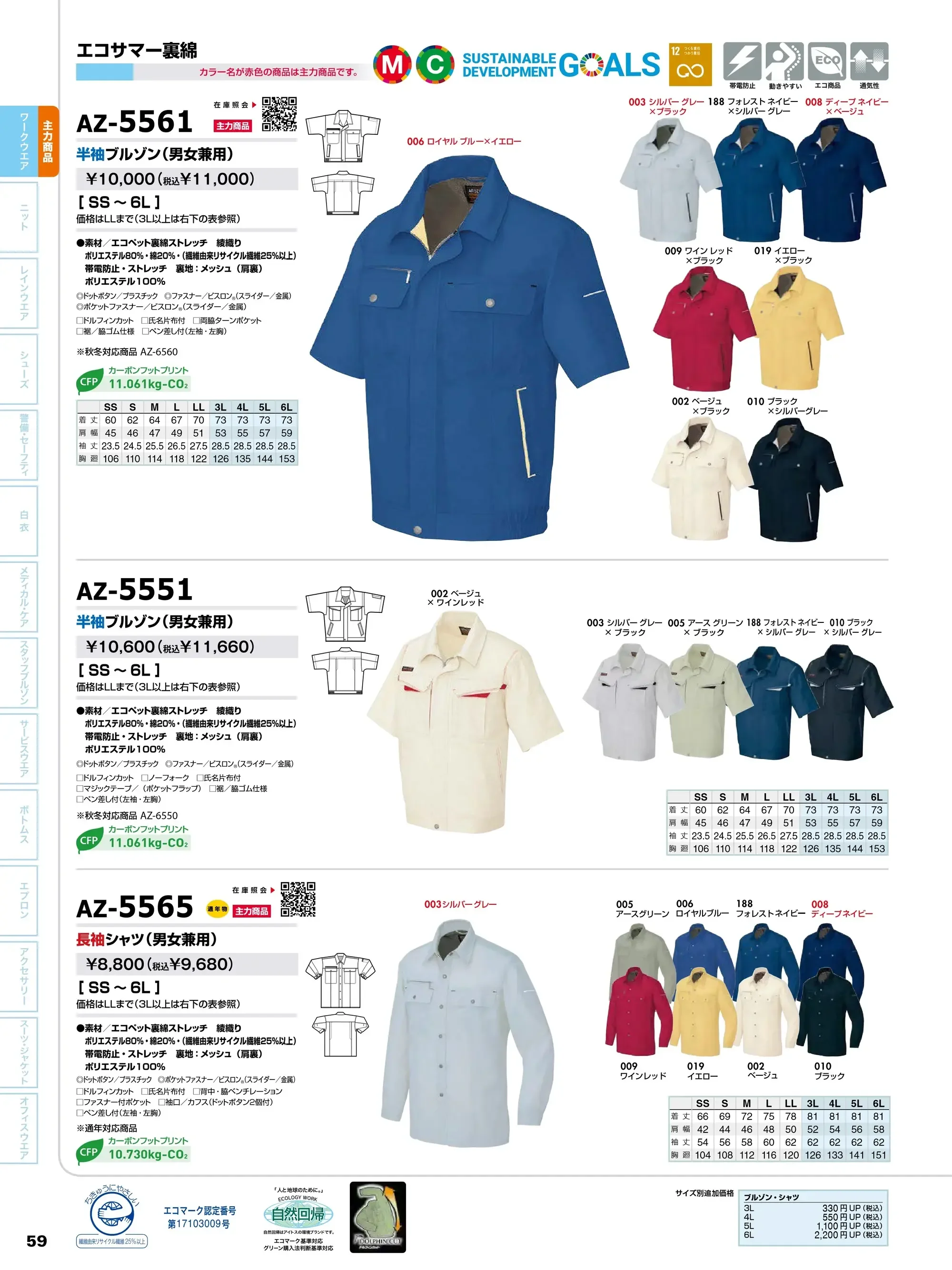 | 形状特長 | ボタン/プラスチック ファスナー/プラスチック(スライダー/金属) ドルフィンカットスリーブ 胸ファスナー付ポケット 半裏メッシュ 携帯電話入れ付胸ポケット リフレクター付ペンさし ターンポケット ヨークサイドメッシュ ノーフォークサイドメッシュ エコサマー裏綿 |