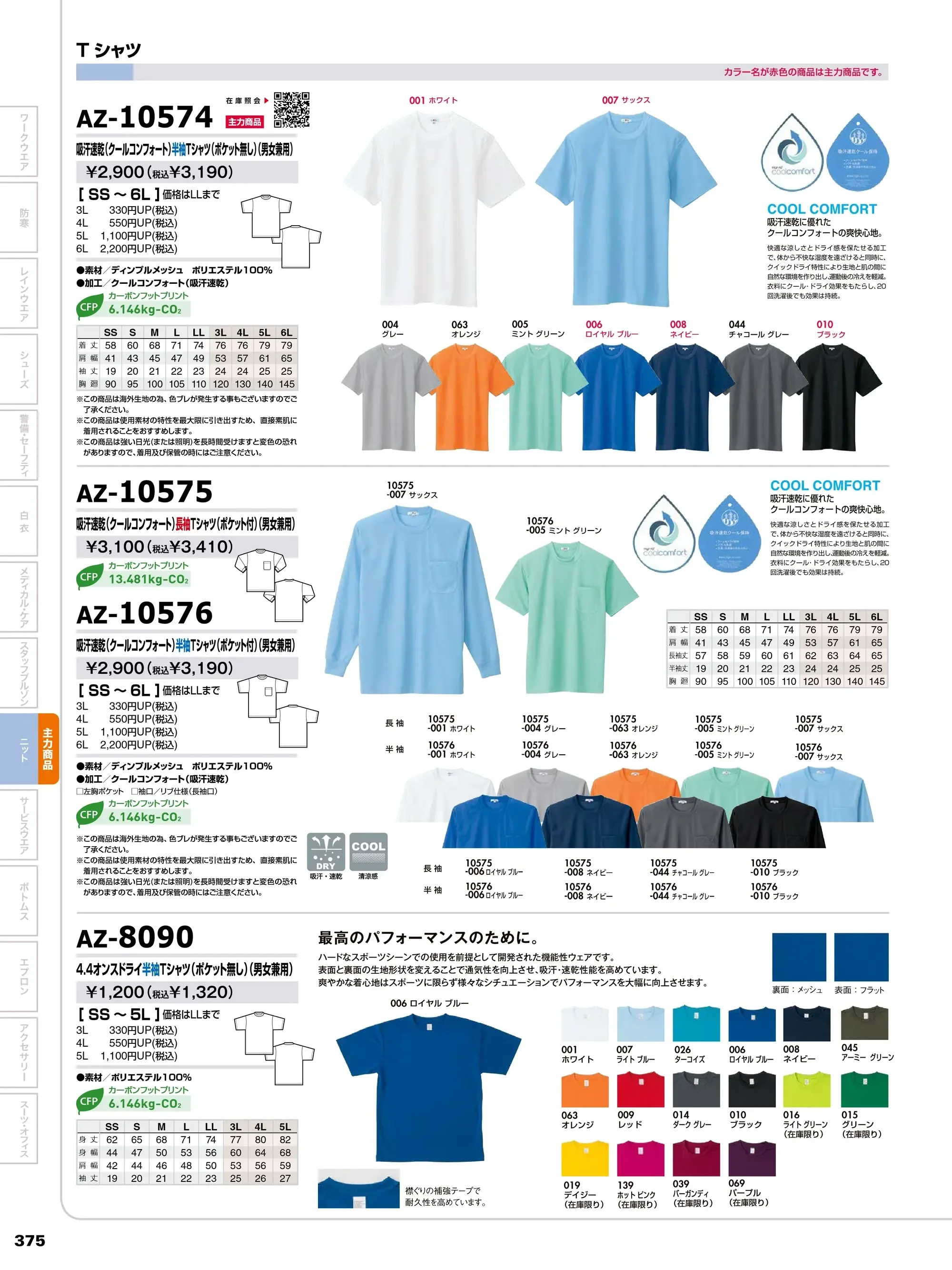 AZ-8090-A 4.4オンスドライ半袖Tシャツ(ポケット無し)(男女兼用)