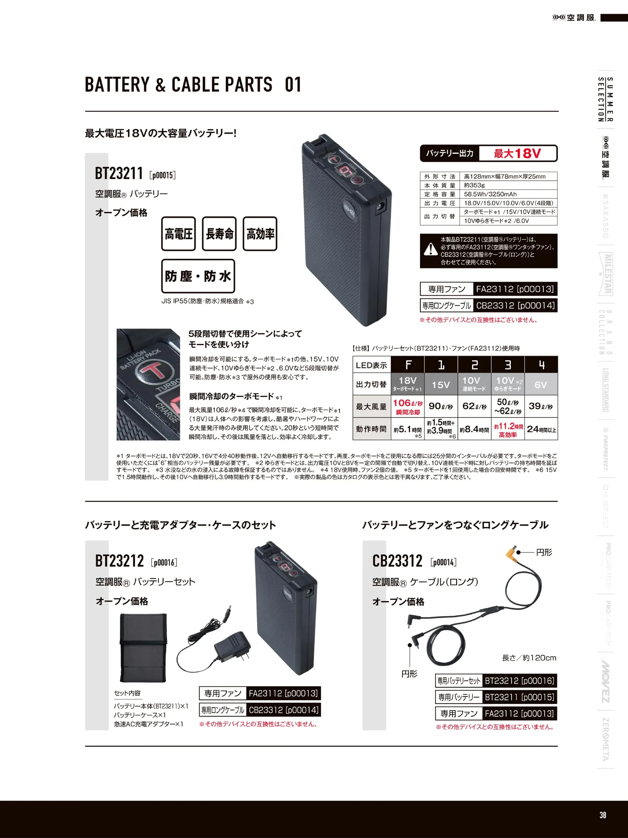 ※5 ターボモードとは、18Vで20秒、16V4分40秒動作後、12Vへ自動移行するモードです。再度、ターボモードをご使用する際には25分間のインターバルが必要です。