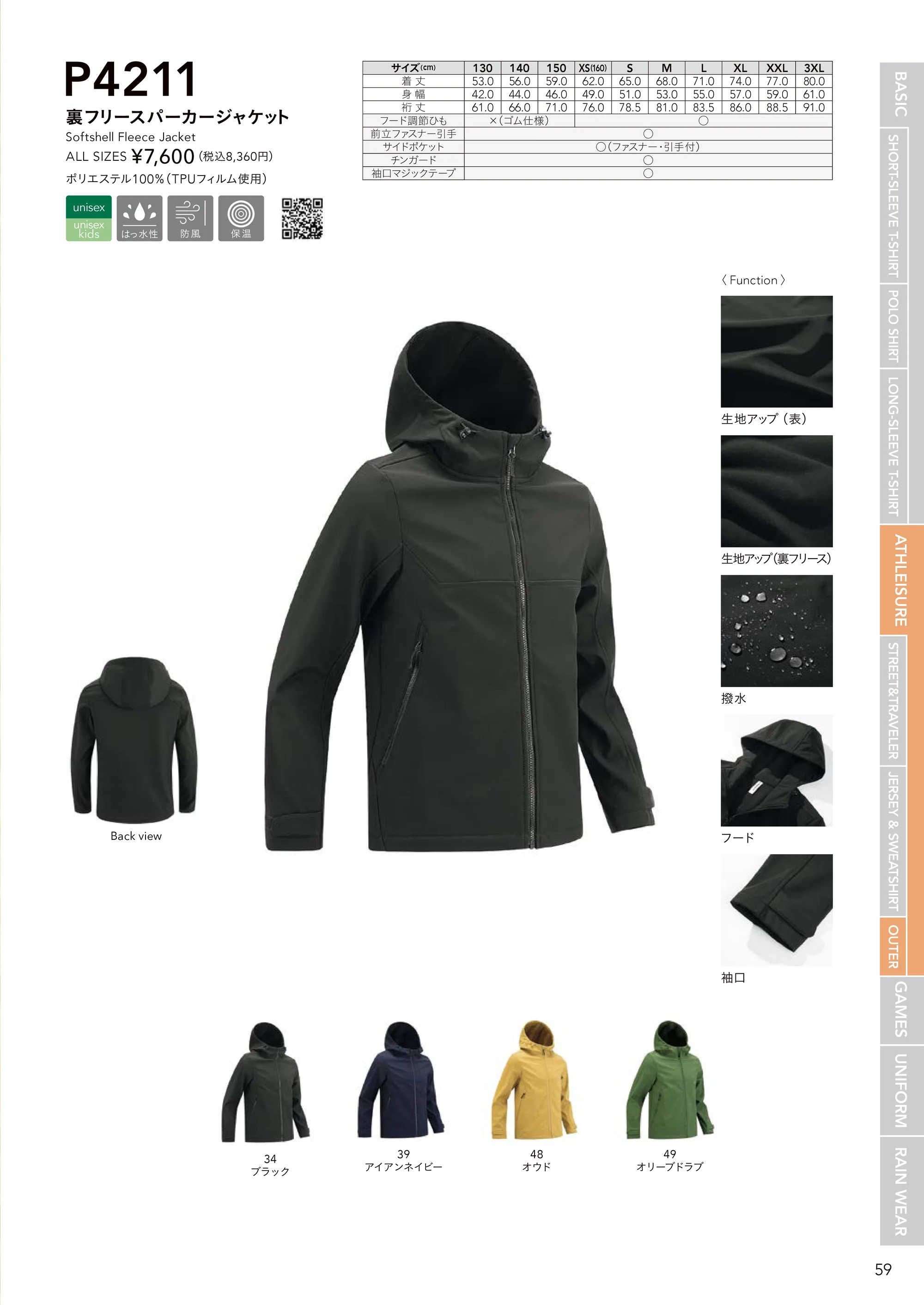 | 素材特長 | 撥水・防風・保温・裏フリース |