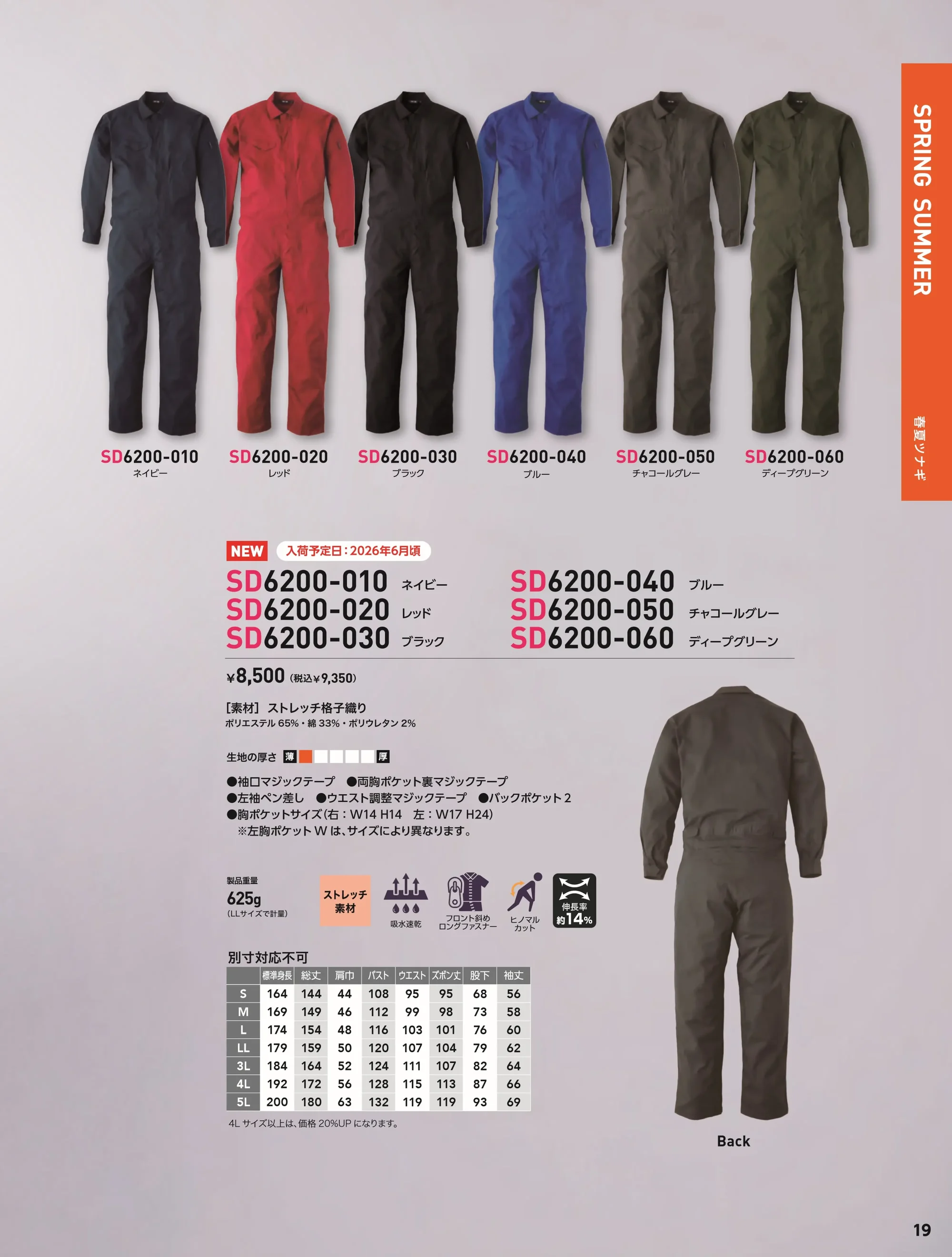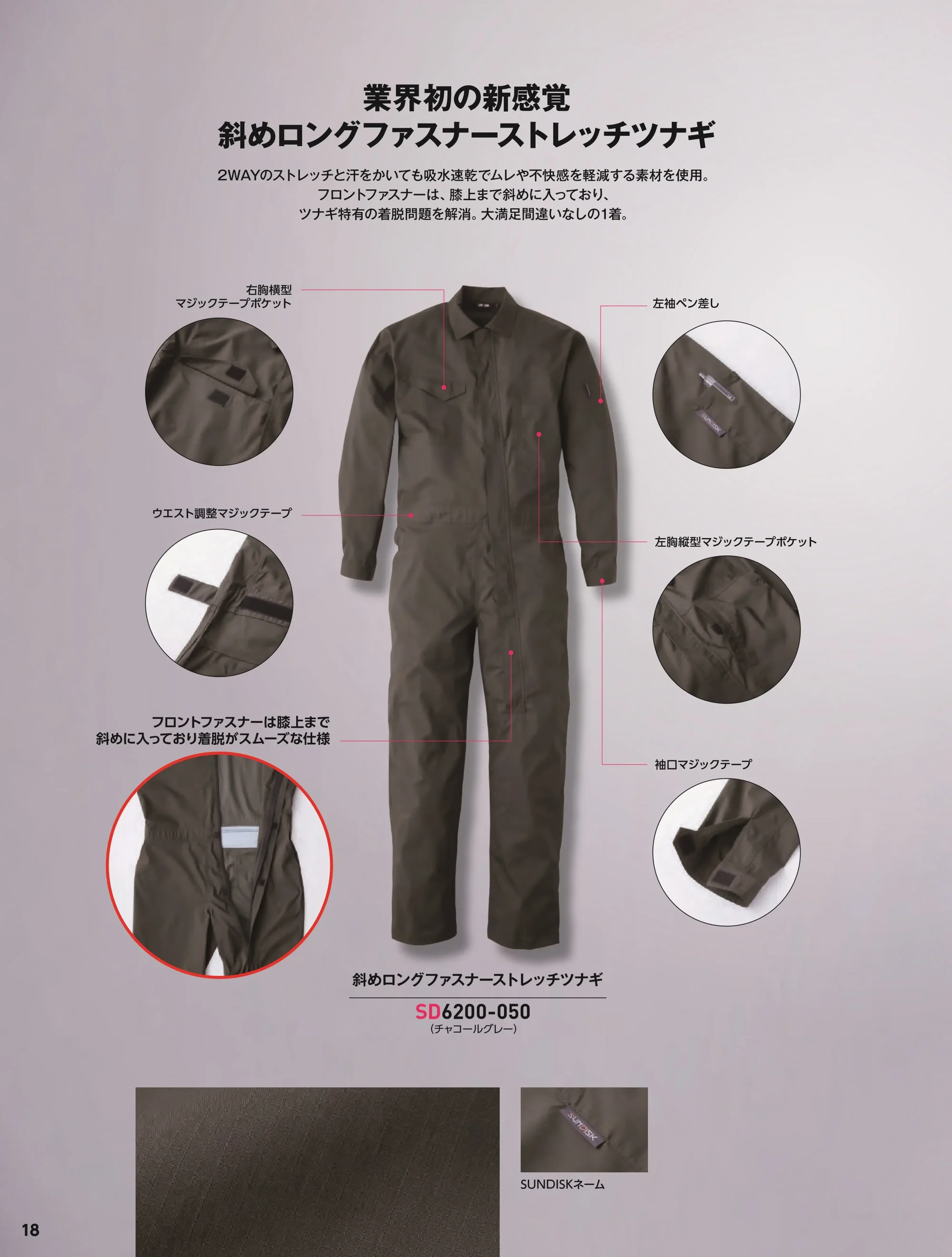 斜めロングファスナーストレッチツナギ(SD6200-030)