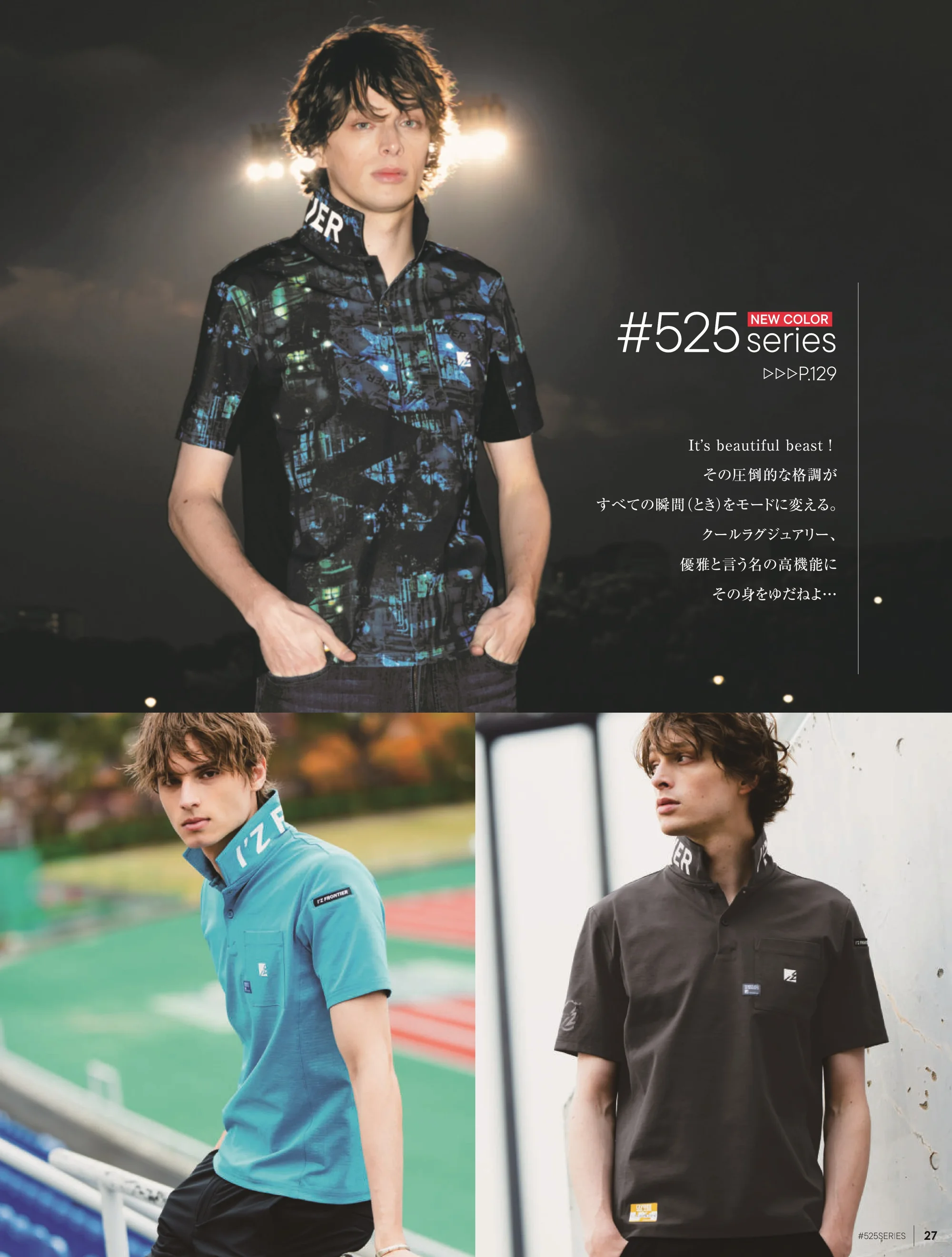 パウダードライストレッチ天竺を採用した半袖ポロシャツ。ポリエステル100%の軽量素材に優れた吸水速乾性とストレッチ性能を備え、さらっとしたドライな肌触りを実現。UVカット率99.5%で夏の屋外作業にも快適に対応します。