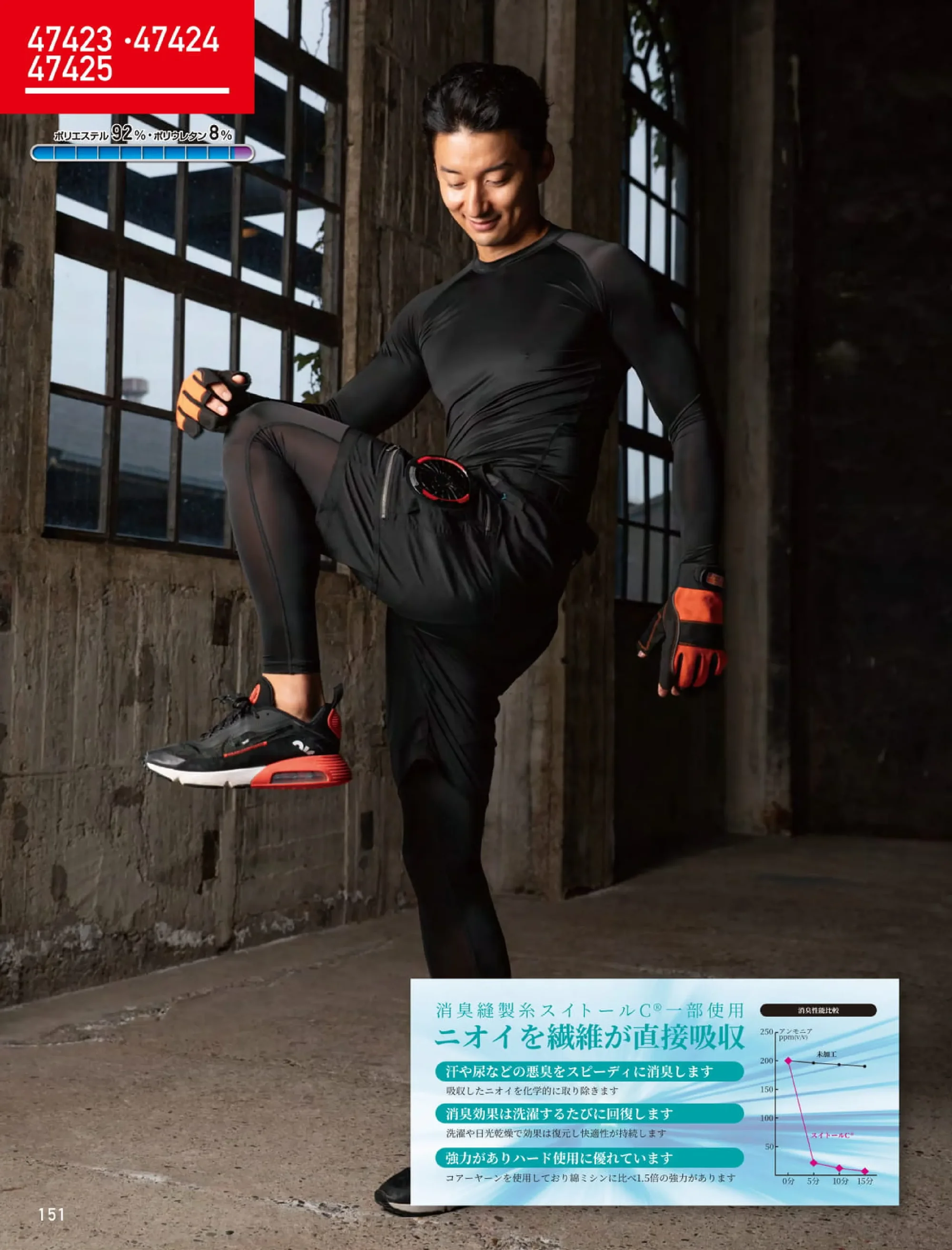 接触冷感素材を採用した作業用長袖アンダーウェアです。優れたストレッチ性と吸汗速乾性に加え、消臭縫製糸スイトールC®を一部使用。汗ばむ季節の作業でも快適な着心地を保ち、インナーとして働く人の動きをしっかりサポートします。