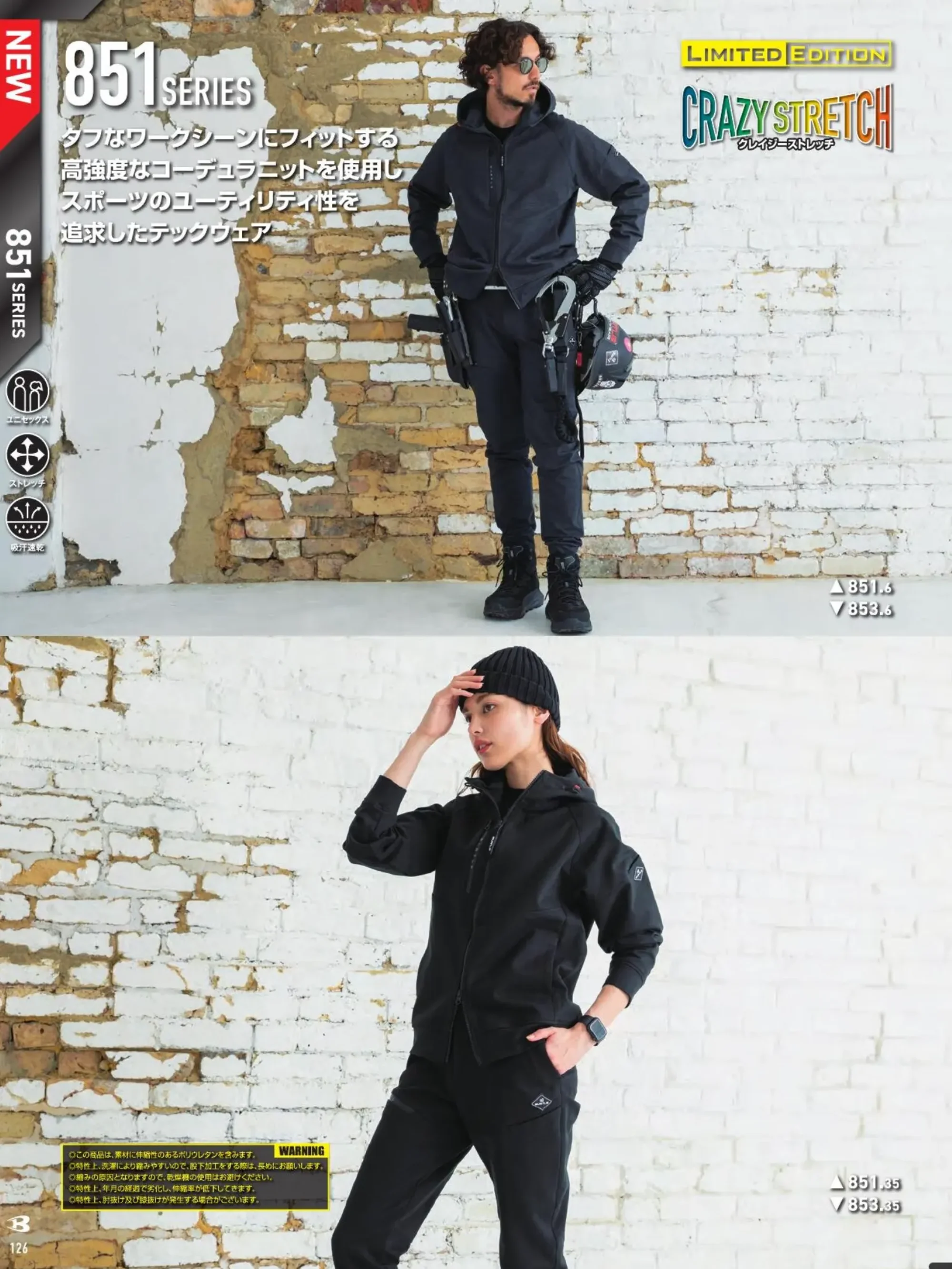 タフな作業現場に対応するCORDURA NYCOダブルフェイスジャージを採用した851シリーズのハイパフォーマンスパンツです。伸長率40%以上の高いストレッチ性と耐久性・吸水速乾性を兼ね備え スポーツのようなアクティブな動きにも対応します。男女ユニセックスの着用に最適な機能的なジョガーパンツです。