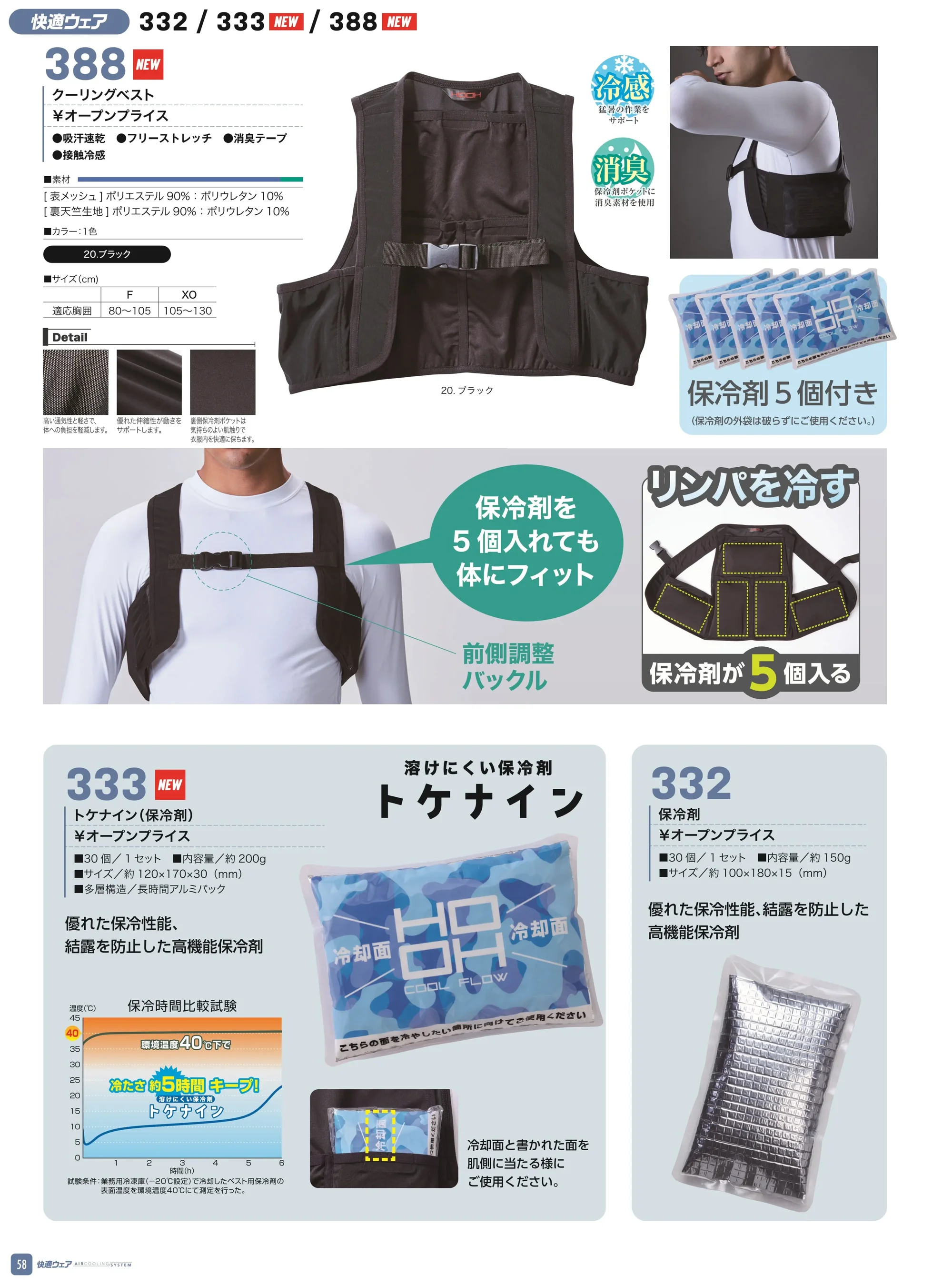 | 素材特長 | 接触冷感・吸汗速乾・フリーストレッチ・通気性・軽量・保冷剤ポケットに消臭素材使用 |