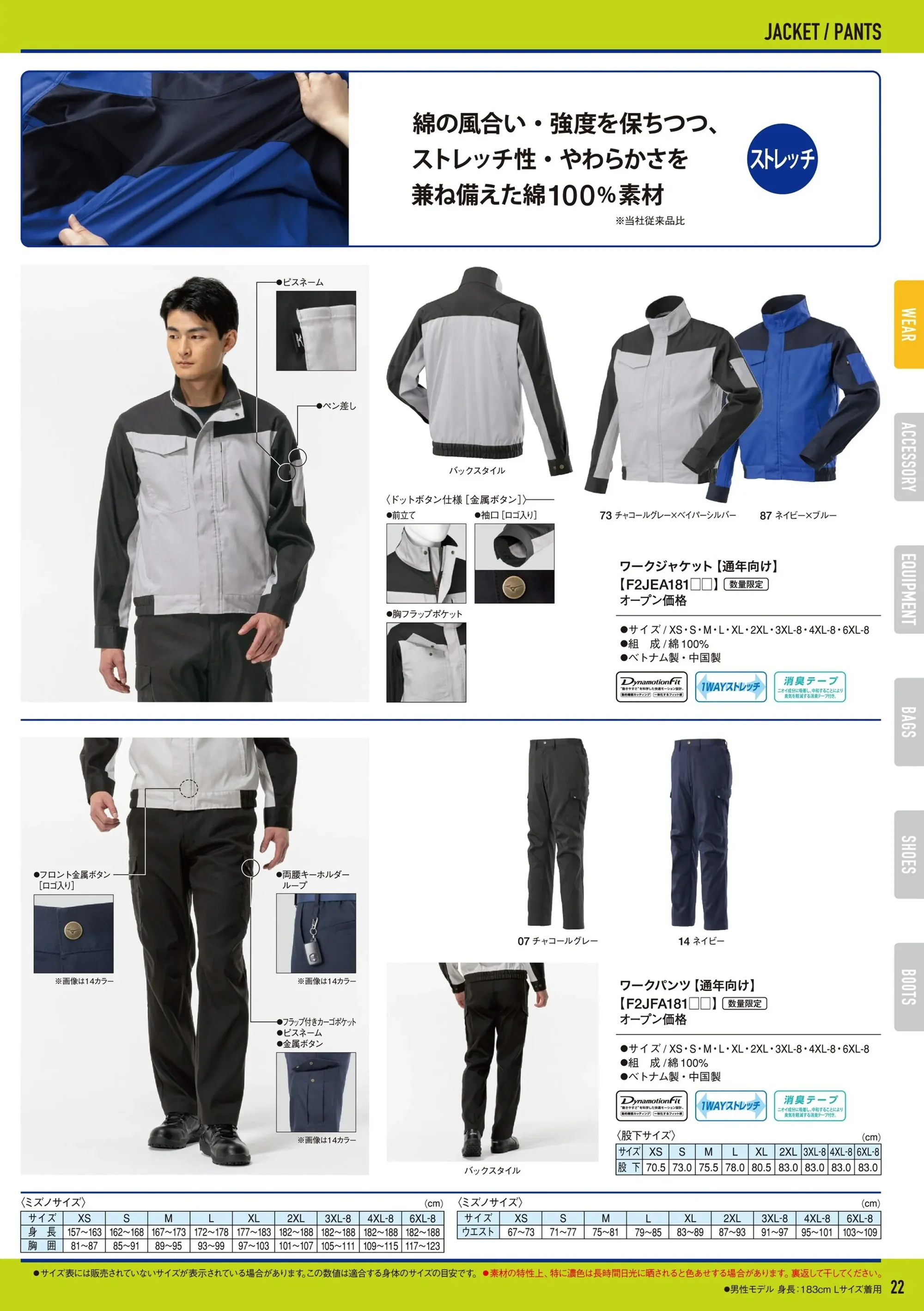 | 形状特長 | ドットボタン仕様(金属ボタン)・左胸ファスナーポケット・右胸フラップポケット・左袖ペン差し付き・ダイナモーションフィット・消臭テープ |