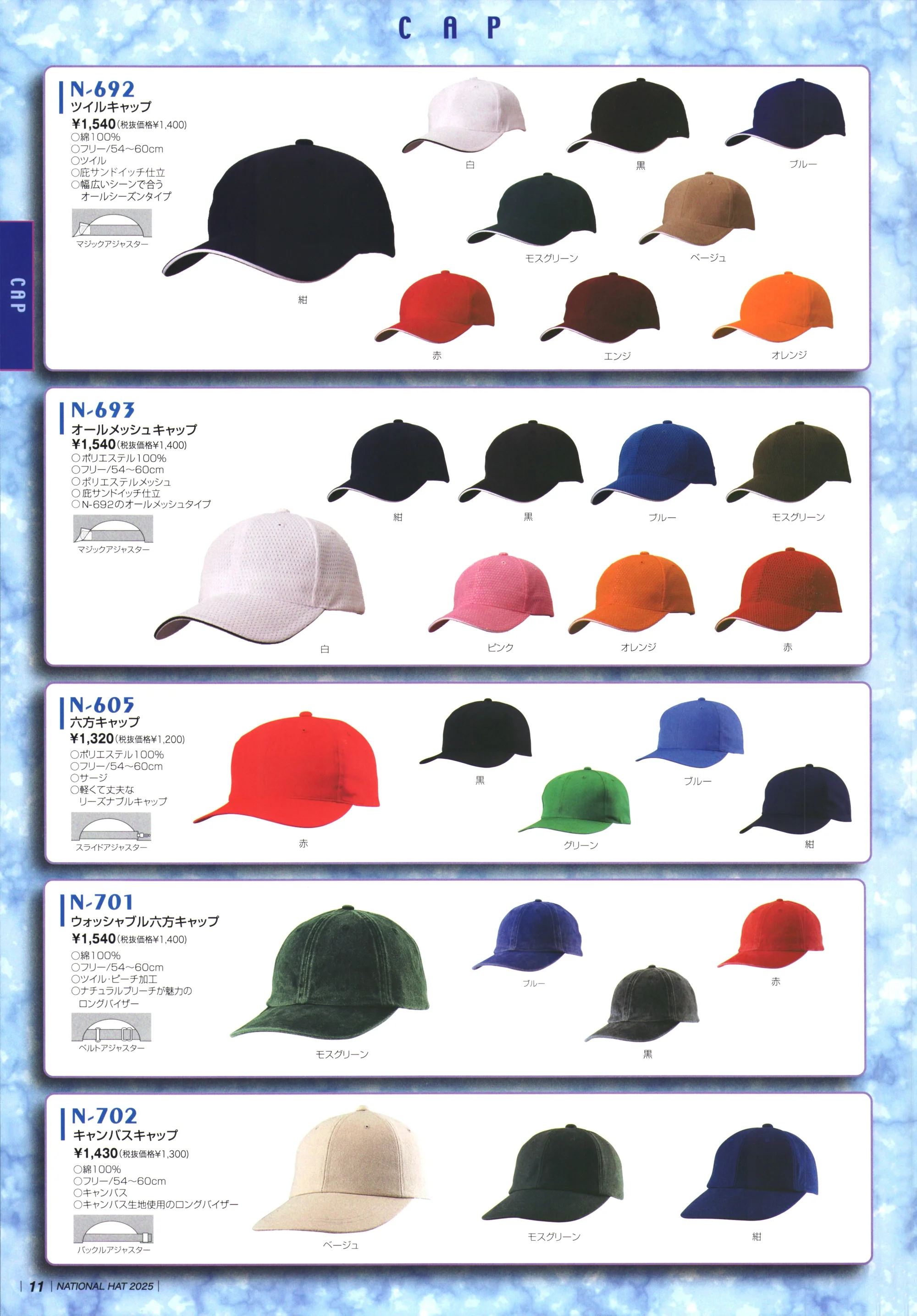 | カタログ名 | ハット&キャップ ナショナルハット 2025 |