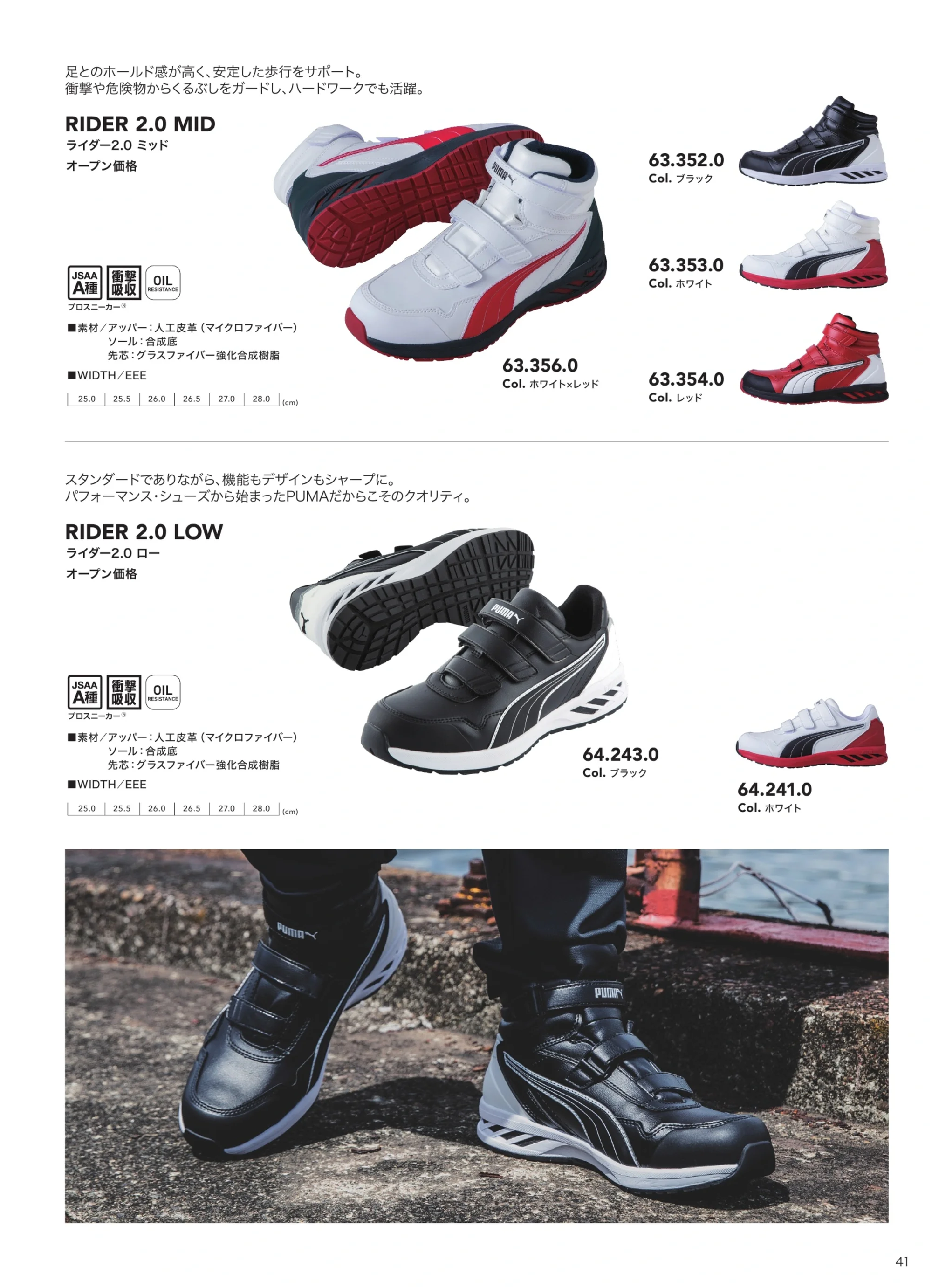 PUMA SAFETYの軽量モデルJAPAN ATHLETICシリーズ。ライダー2.0 ミッドです。足とのホールド感を高めたミッドカット設計により安定した歩行をサポート。衝撃吸収性を備え、ハードワークでも安心して使用できます。
