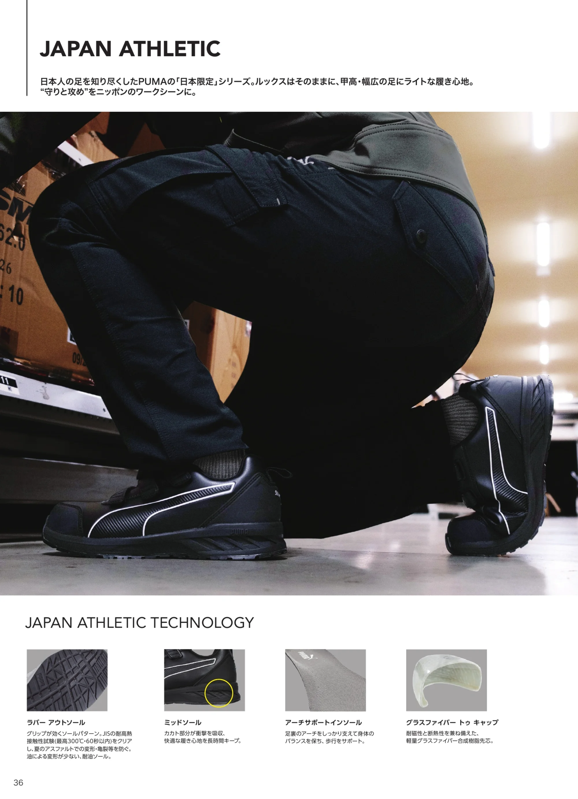 PUMA SAFETYの軽量モデルJAPAN ATHLETICシリーズ。柔軟性に優れたメッシュアッパーSPRINT2.0をアップデートし、DISCレーシングシステムを搭載。軽快な足元とスマートなデザインでワークシーンの快適性を高めます。