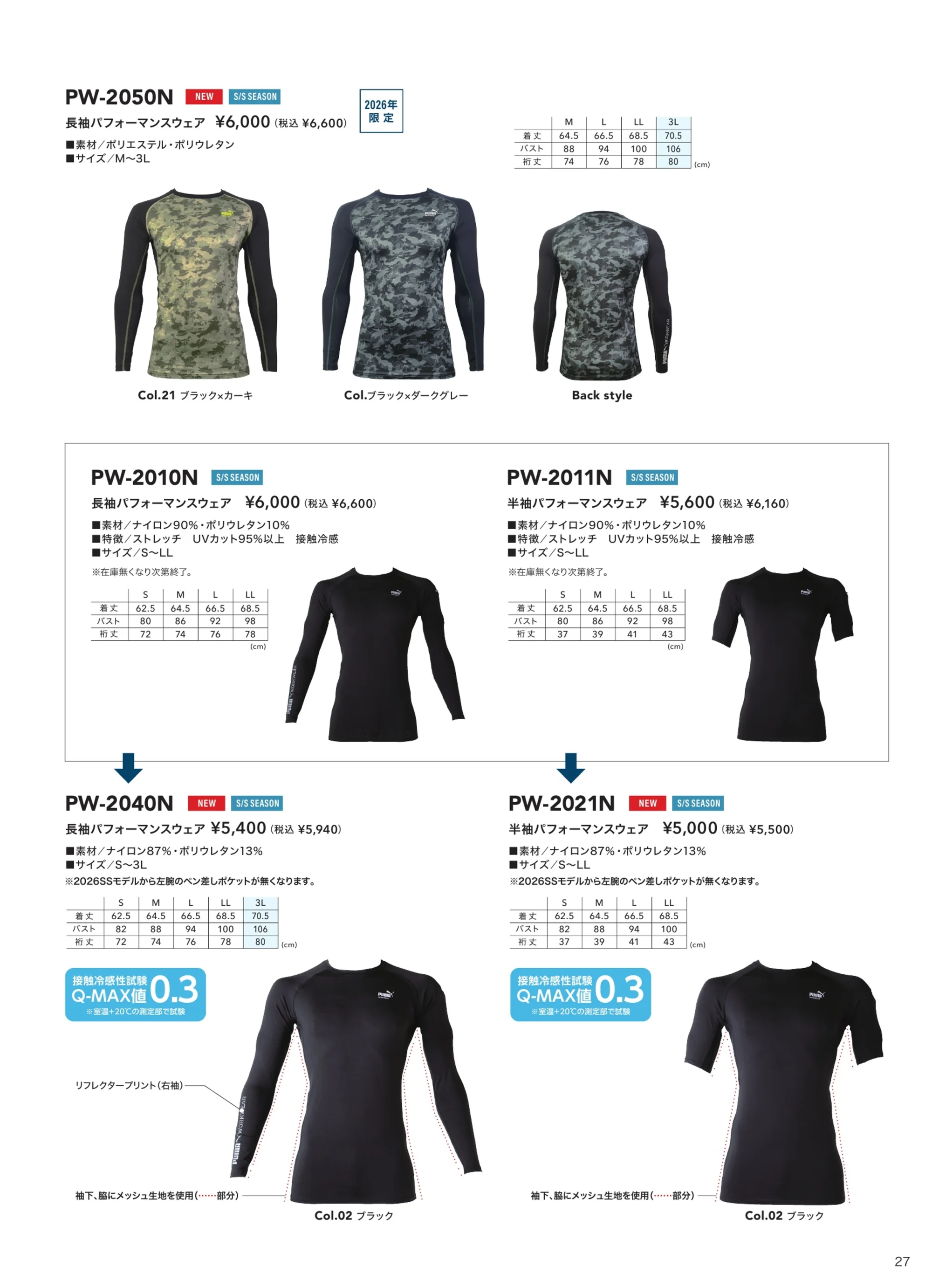 | 形状特長 | 袖下・脇メッシュ |