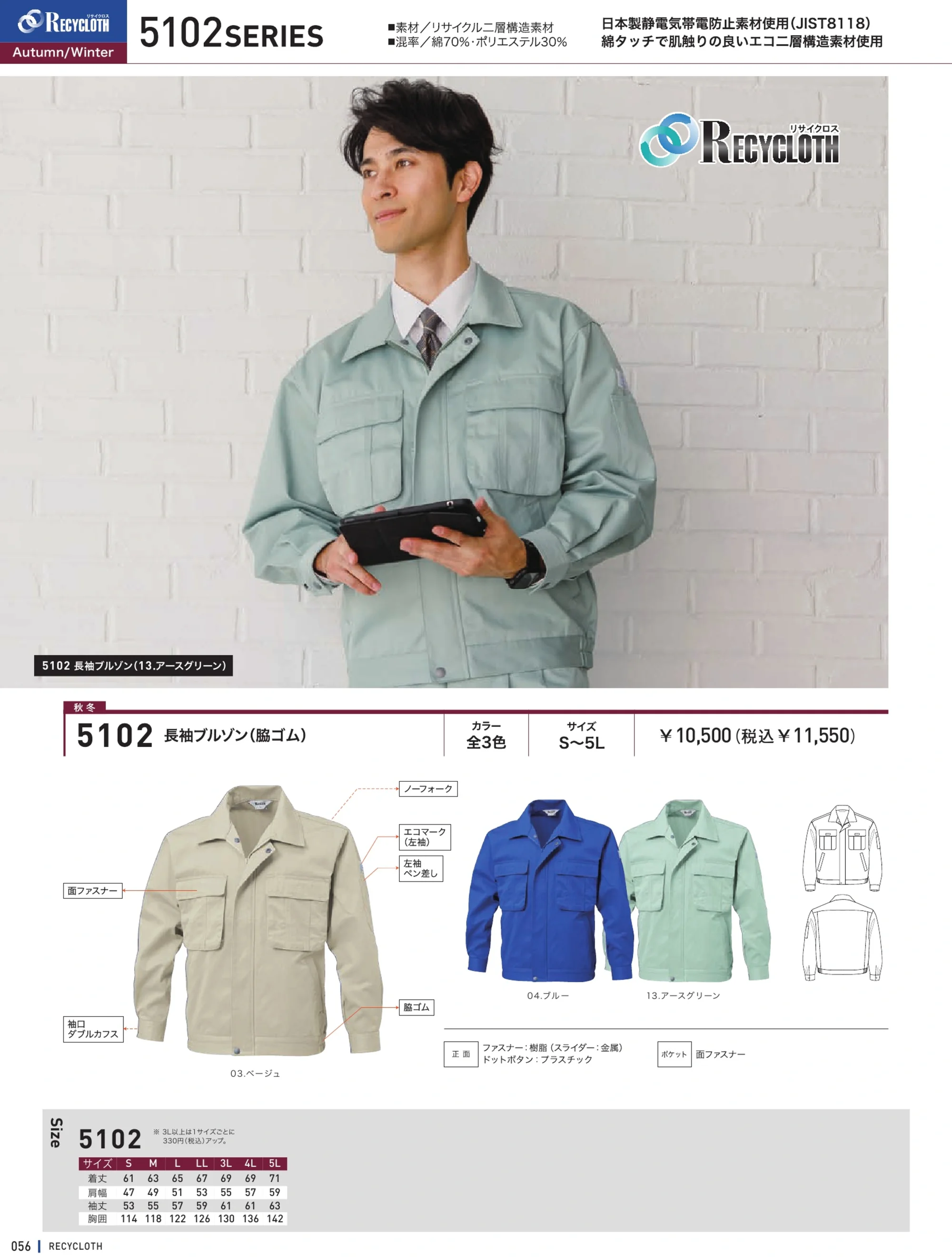 | 素材特長 | グリーン購入法対応商品・エコマーク商品・綿高混率・制電JIS T8118適合・防しわ・防縮・速乾性・肌に優しく着心地がソフト |
