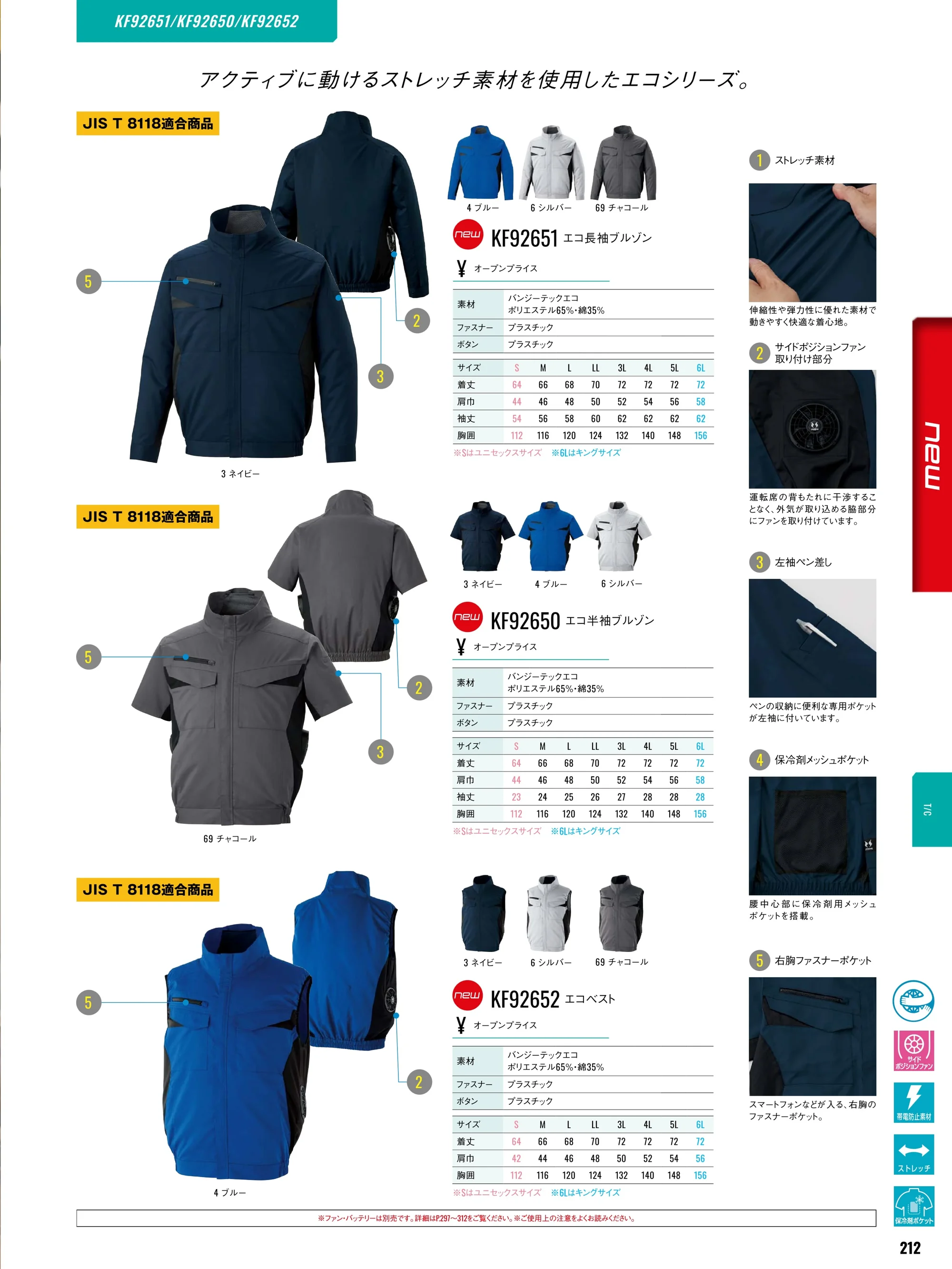| 形状特長 | 保冷剤ポケット サイドポジションファン 左袖ペン差し 右胸ファスナーポケット |