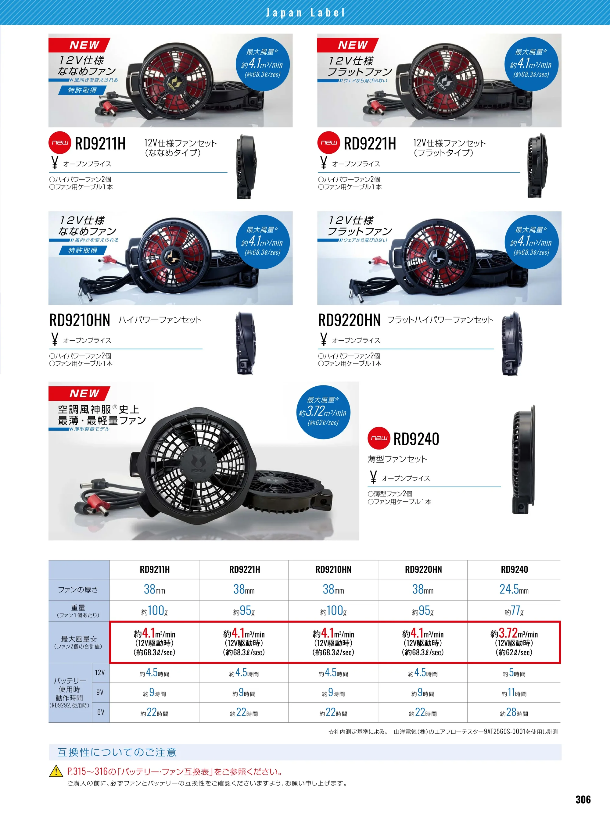 ・最大風量:約4.1㎥/min(12V駆動時)