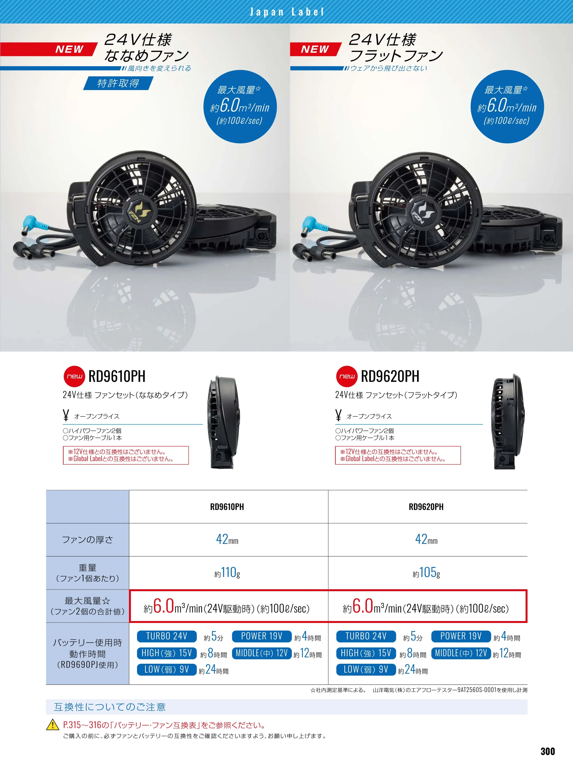 最大風量約6.0㎥/minを実現した24V仕様の高出力フラットファンセットです。フラット形状によりウェア内にすっきり収まり 衣服のシルエットを崩しにくい設計。24V駆動ならではの圧倒的な送風力で 猛暑環境下の作業を強力にサポートします。