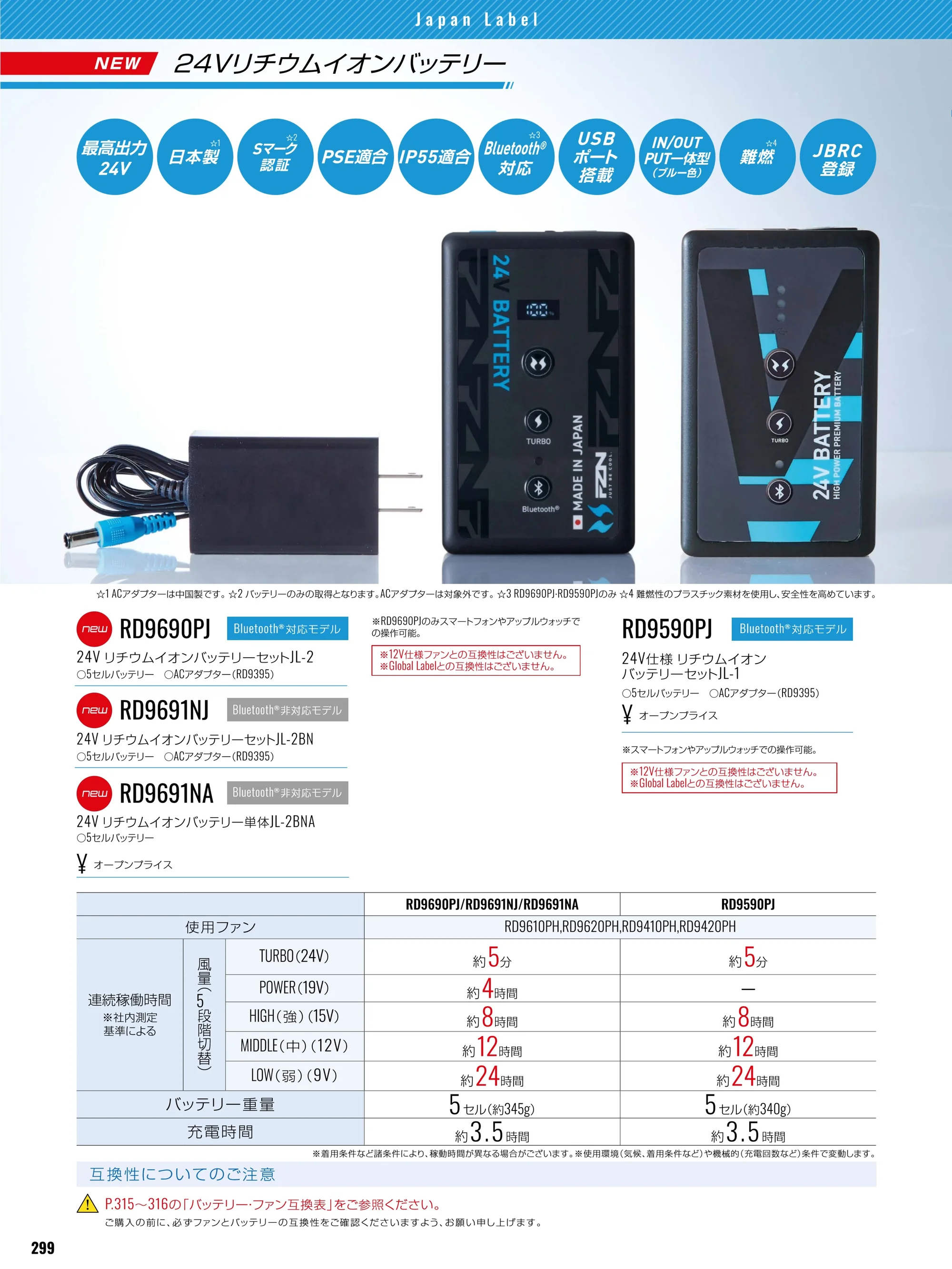 RD9691NA 24Vリチウムイオンバッテリー単体JL-2BNA