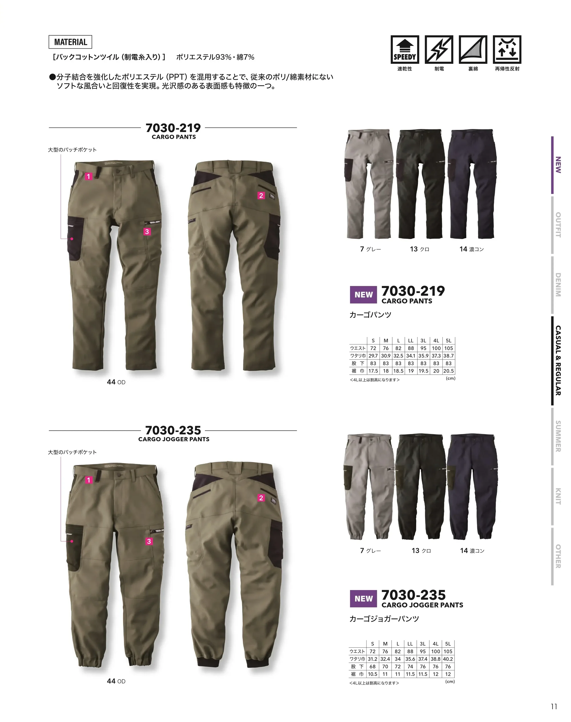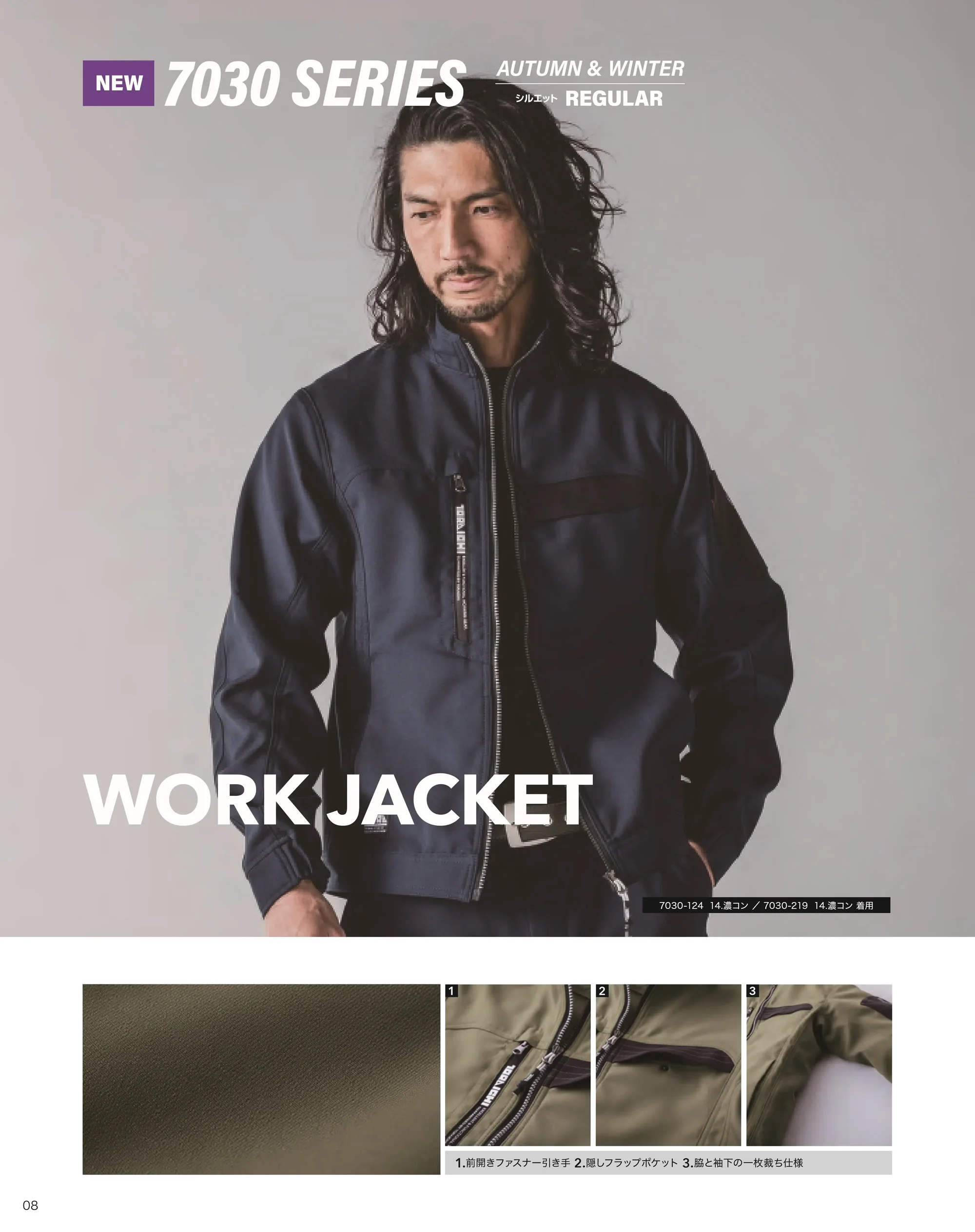 7030シリーズのワークジャケットは、分子結合を強化したポリエステル素材でソフトな風合いと回復性を実現しました。制電・制菌・裏綿の3つの機能を備え、快適な着心地と優れた速乾性で作業現場をサポートします。
