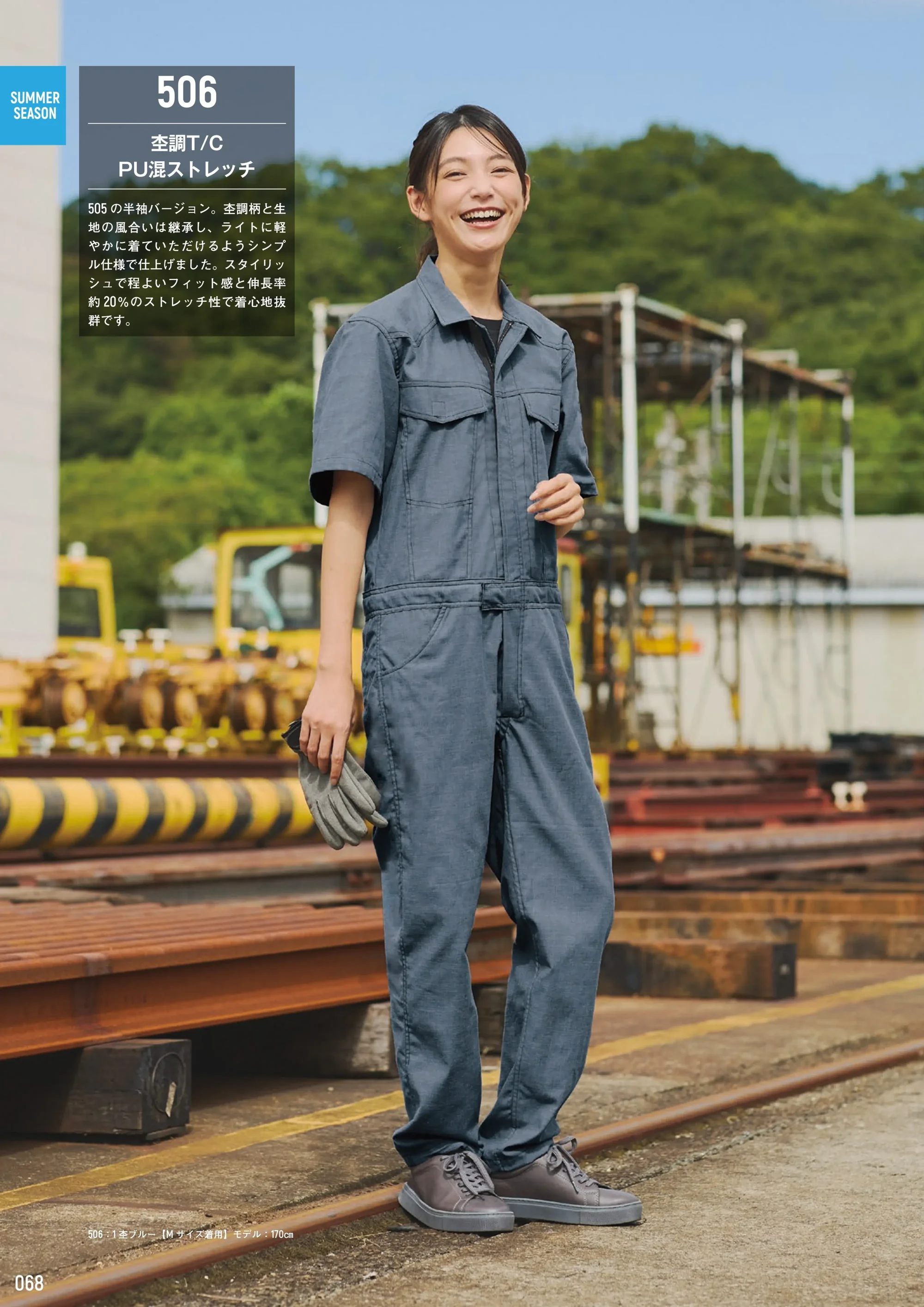 PUストレッチ素材の半袖カバーオール。スタイリッシュで程よいフィット感と伸長率20%のストレッチ性で着心地抜群です。